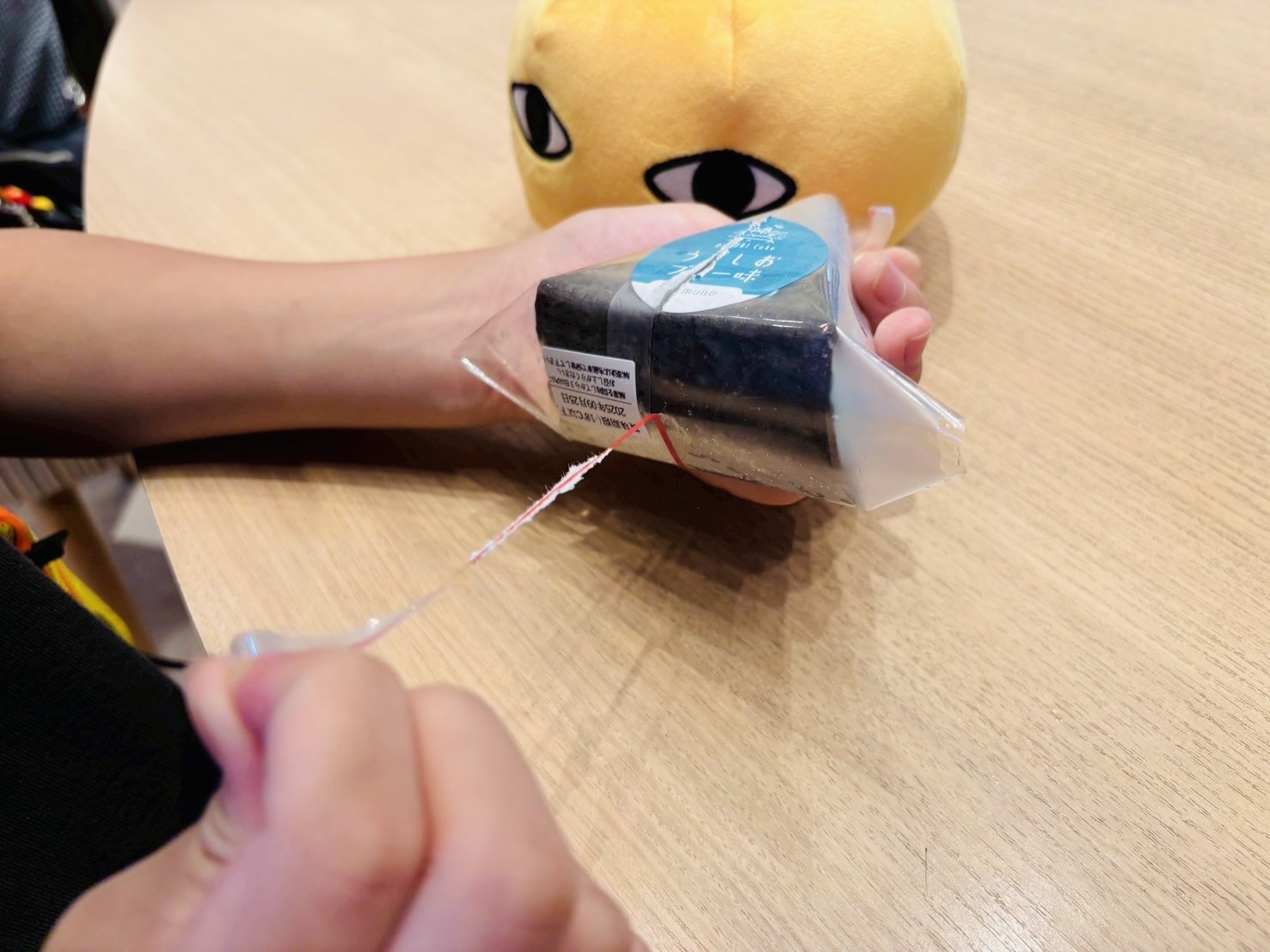 おにぎりを食べるようにビニールをはがして…