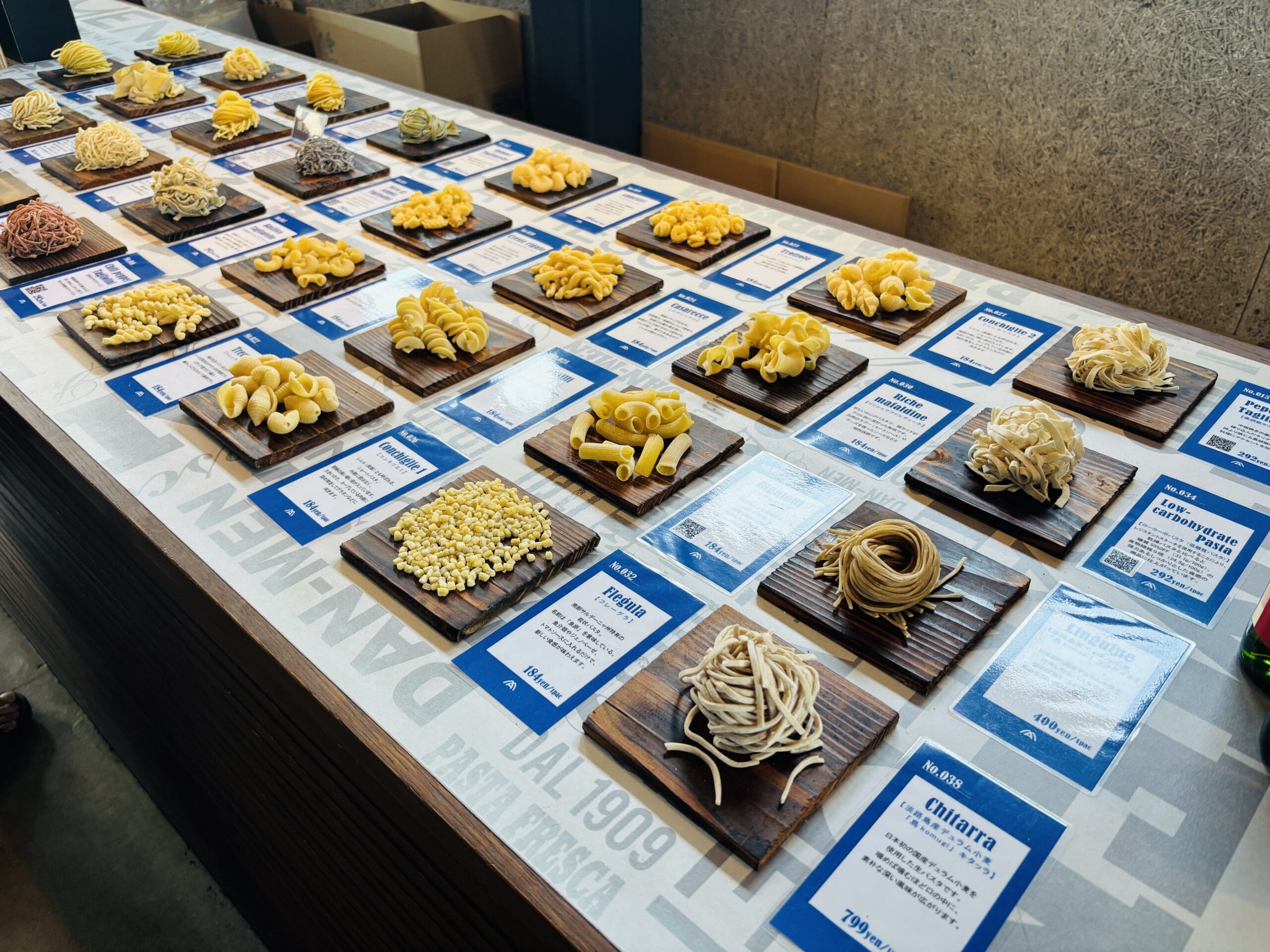 見たことのないパスタがたくさんあって、選ぶのも楽しい。