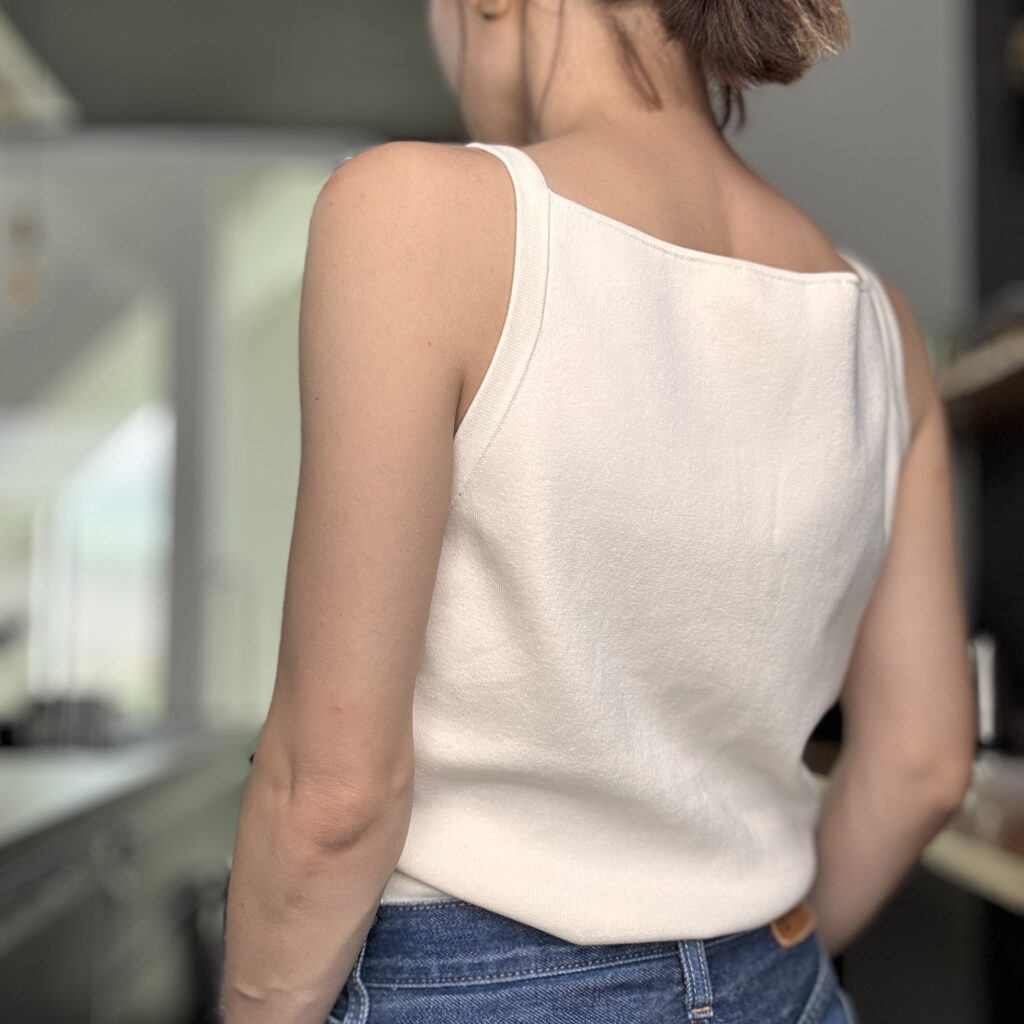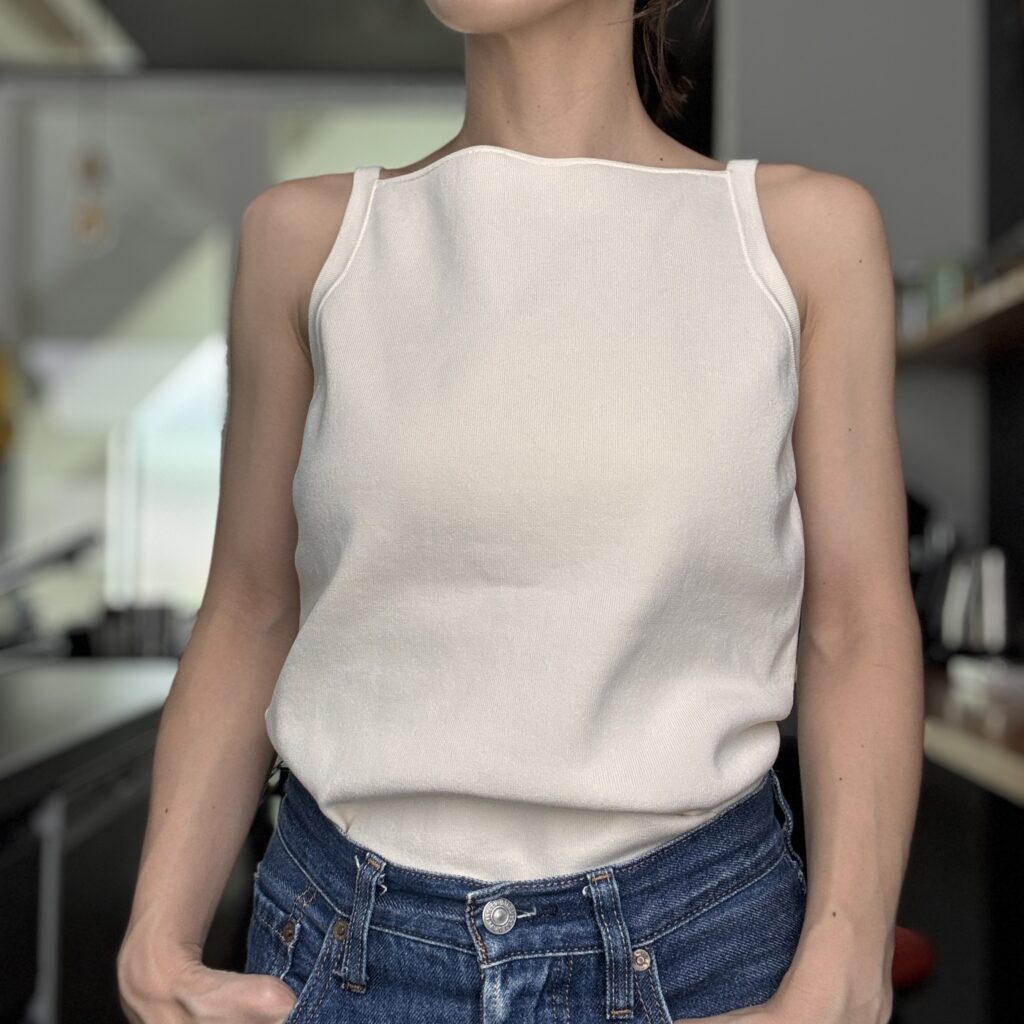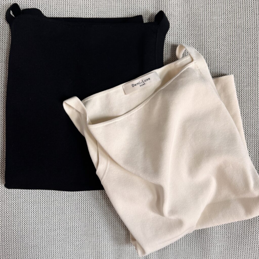 ほかのトップスやスカートは実はすでにお迎えしているものの、ノースリーブ好きの私のクローゼットは文字通りキャミソールだらけで悩みに悩んだものの、何度目かの正直で買いました!