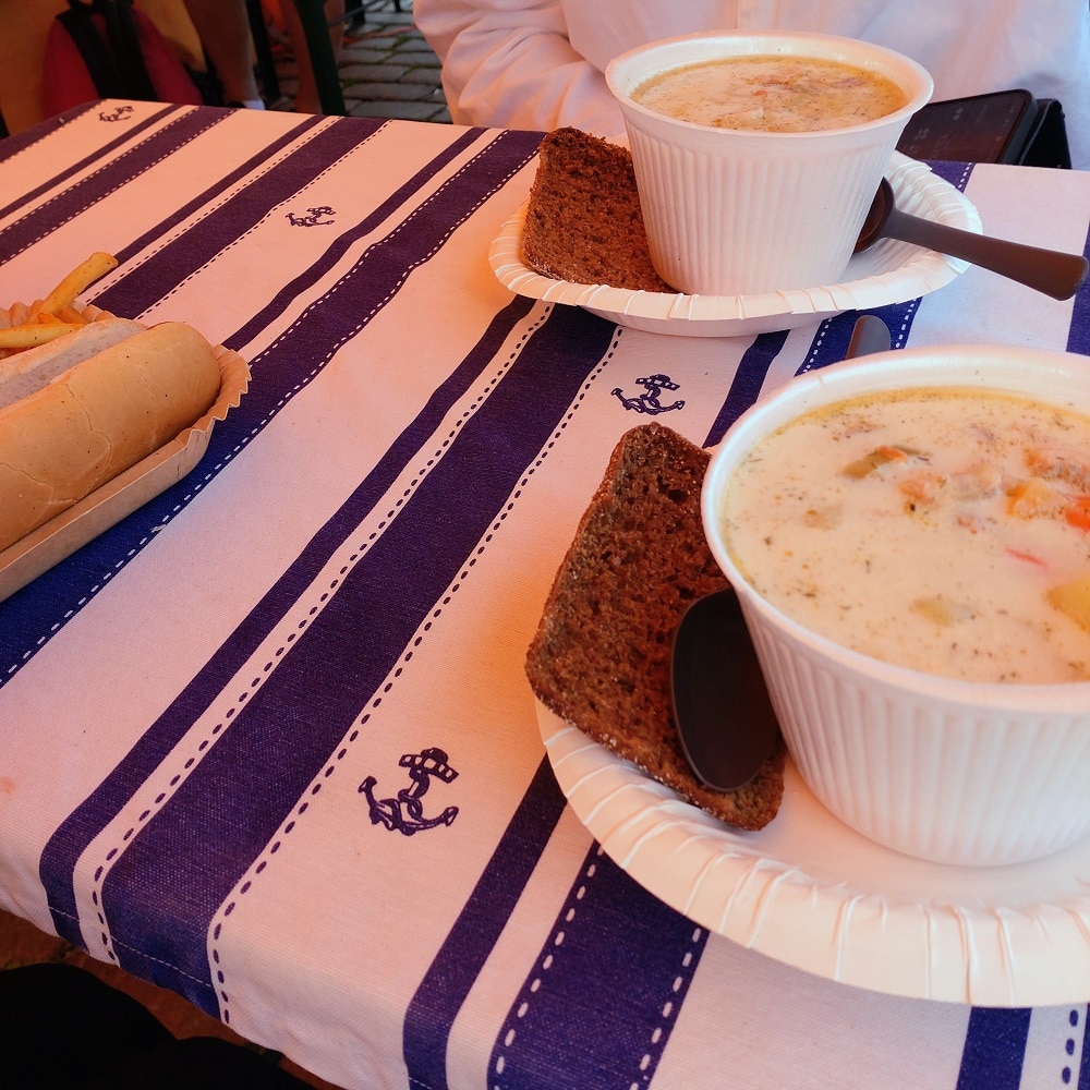 ここで、名物サーモンスープをいただきました。これ、食べたかった!あっさりしていて、具がたっぷりで、パンが付いていて。言うことなしだな。満足。