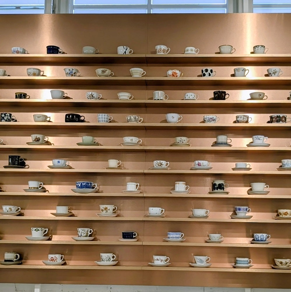 アラビアのカップ&ソーサーのコレクション。どれでカフェ休憩しようかな~とか考えるだけでもムフフってなってしまう。
