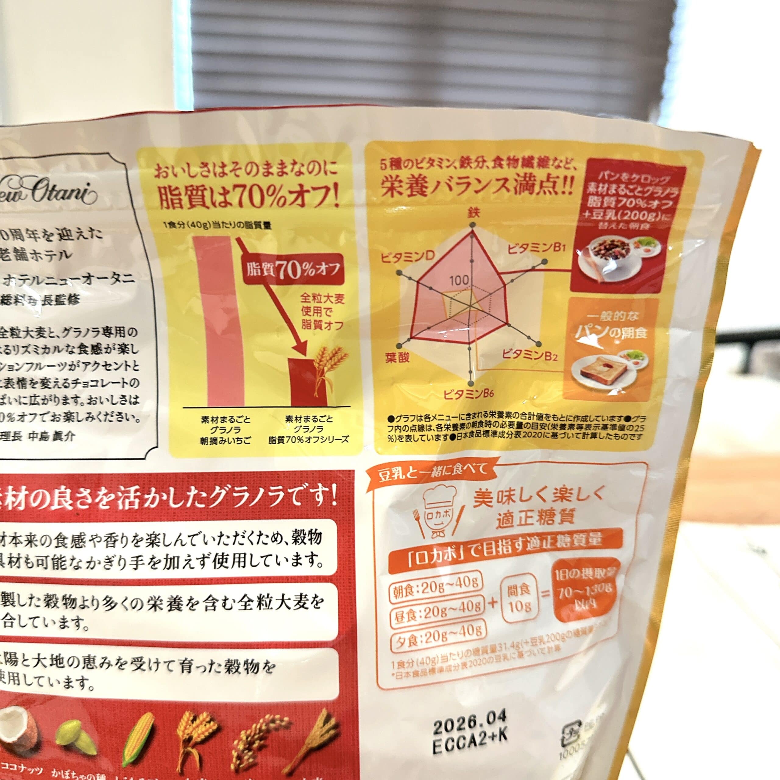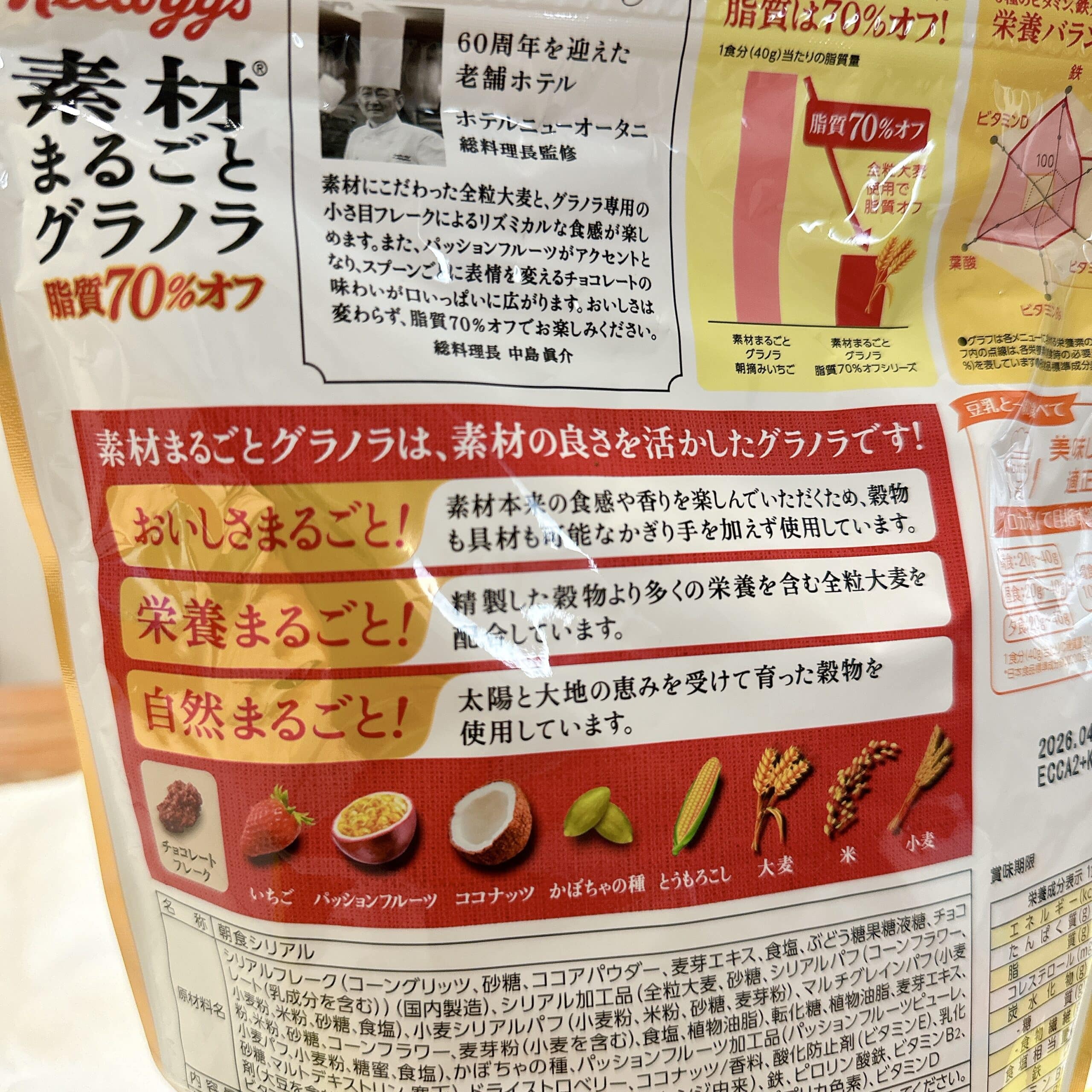 甘いものや満足感のあるおやつが欲しくなったときに 「素材まるごとグラノラ 脂質70%オフ 華やぐフルーティショコラ」 で栄養を摂りつつ、ゆる脂質オフ生活を続けてみたいと思います!