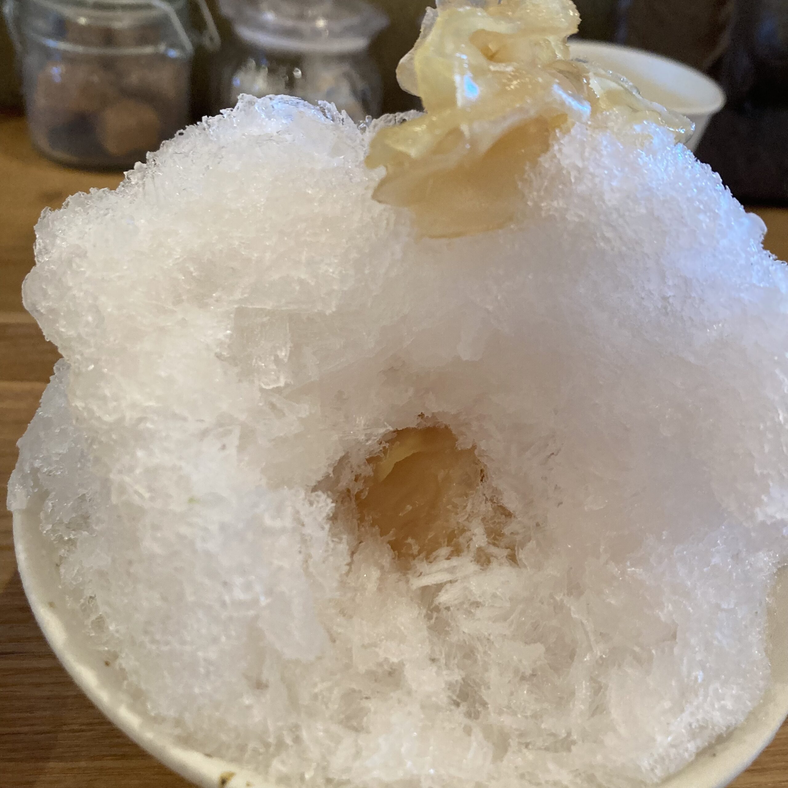 生姜のはちみつ漬けかな?(違っていたらすみません)かき氷の上にトッピングされていますが、これがまたおいしかったです。