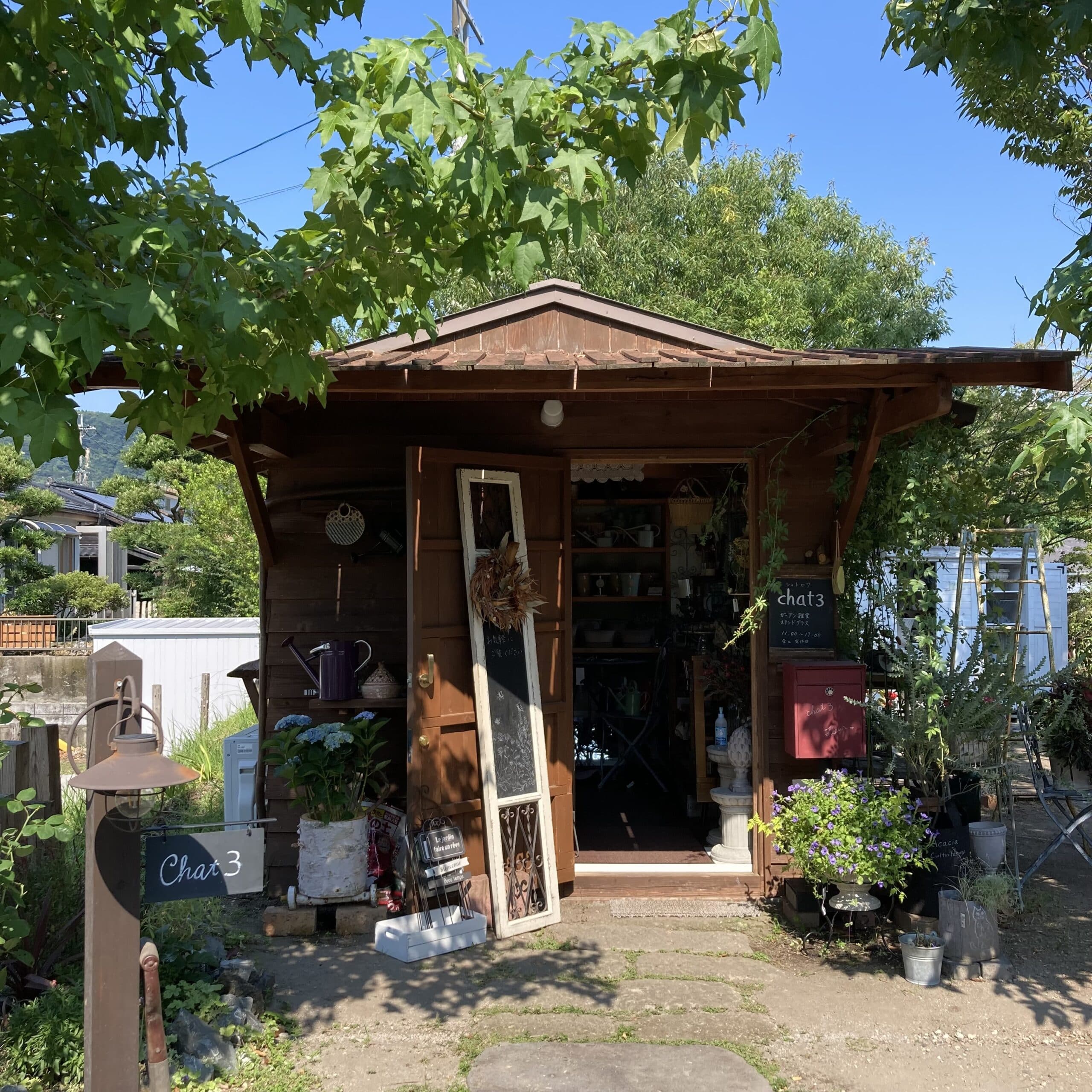 隣に小さな小屋がありました。chat3(シャトロワ)さんというお店です。ガーデニング雑貨を販売されていました。