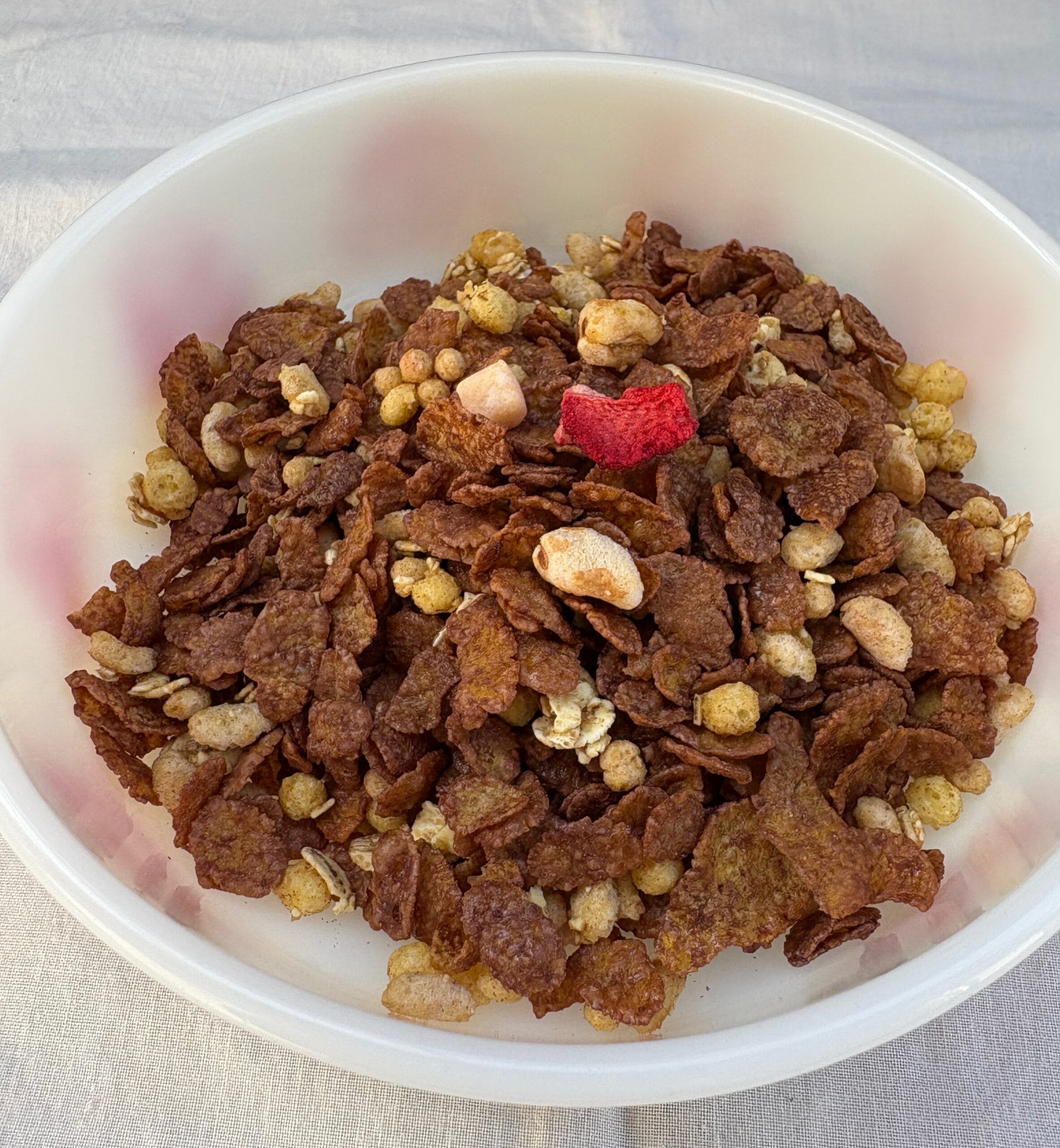 フリーズドライいちごもたっぷりで、さまざまな食感が楽しめて、食物繊維、ビタミン5種、鉄分など。これで美味しいって本当にケロッグさん天才です。