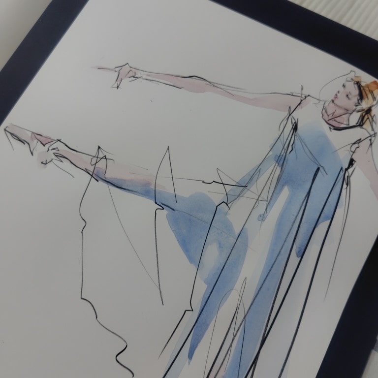 広告の写真は、バレエダンサー!そこにまず釘付けになったのですが、なんと今回のイベントでは、クロッキー(クロッキーは速写とも言い、スケッチの中でも特に短時間で描かれたものをクロッキーと呼び、 主に動物や人体など動きのあるものを、素早く捉える)のモデルになり自分を描いていただくというもの。