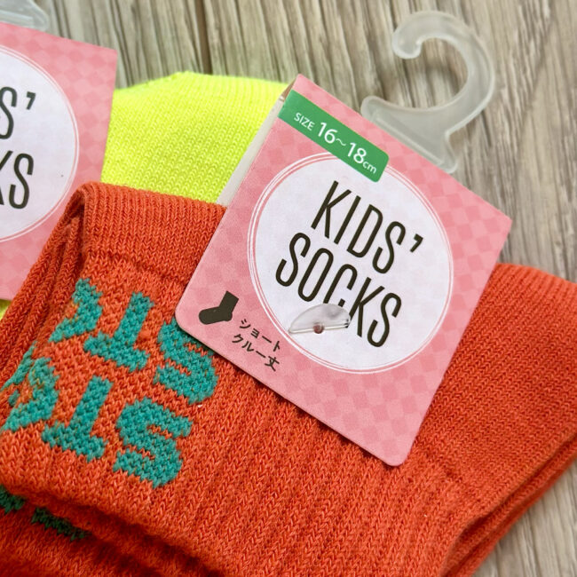 3足組1,000円の靴下でも十分リーズナブルなのですが、それよりお手頃価格で頼りになるのが100円ショップセリアのキッズソックス!