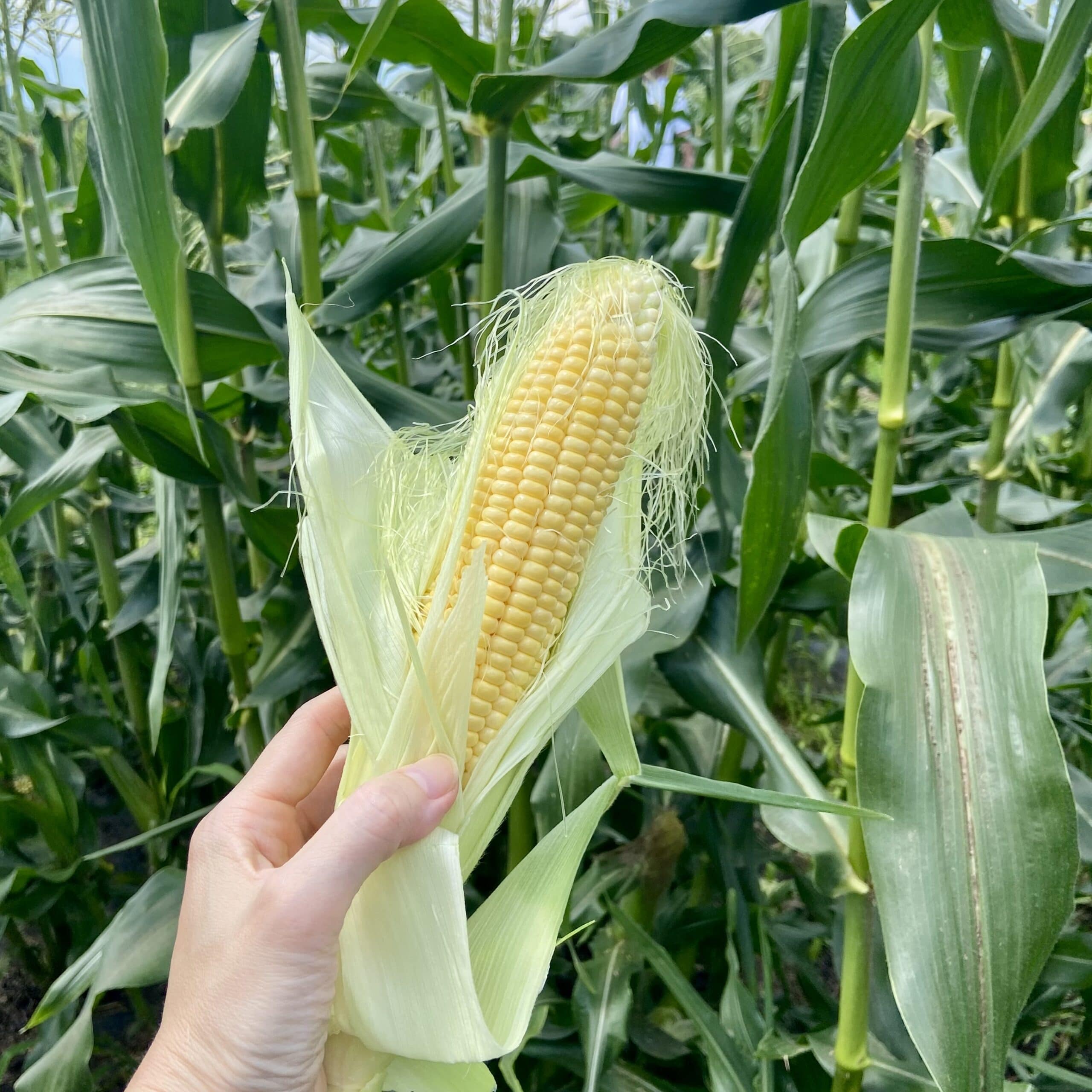 (収穫直後のとうもろこし、すごくみずみずしくて甘くてびっくりでした…!)