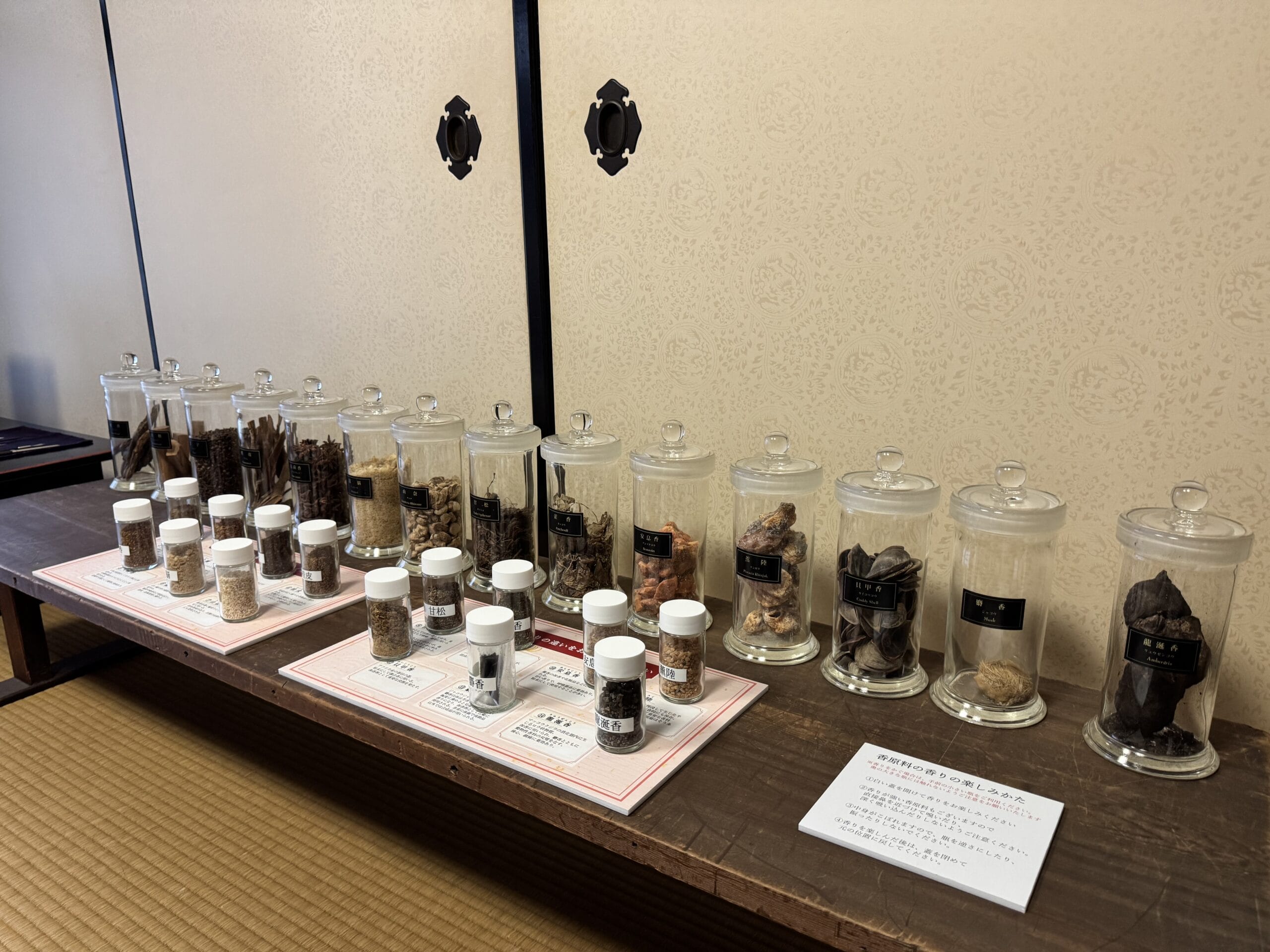 最初の間にズラーっとお香に使われる素材が展示されています。