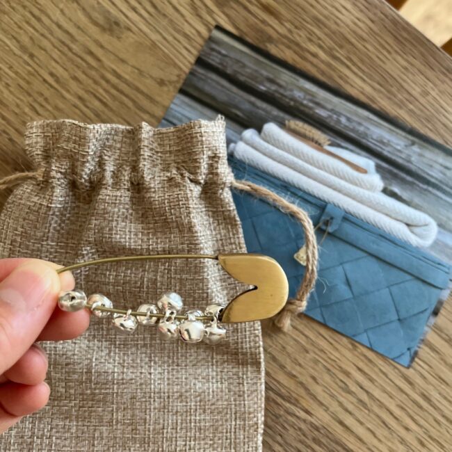 以前からオンラインをチェックする度に気になっていた、こちらのピン。商品名は「セイフティピン ベル 」。Sサイズです。ピンにはたくさんの小さなベルがついていて、とてもかわいらしいのです♩