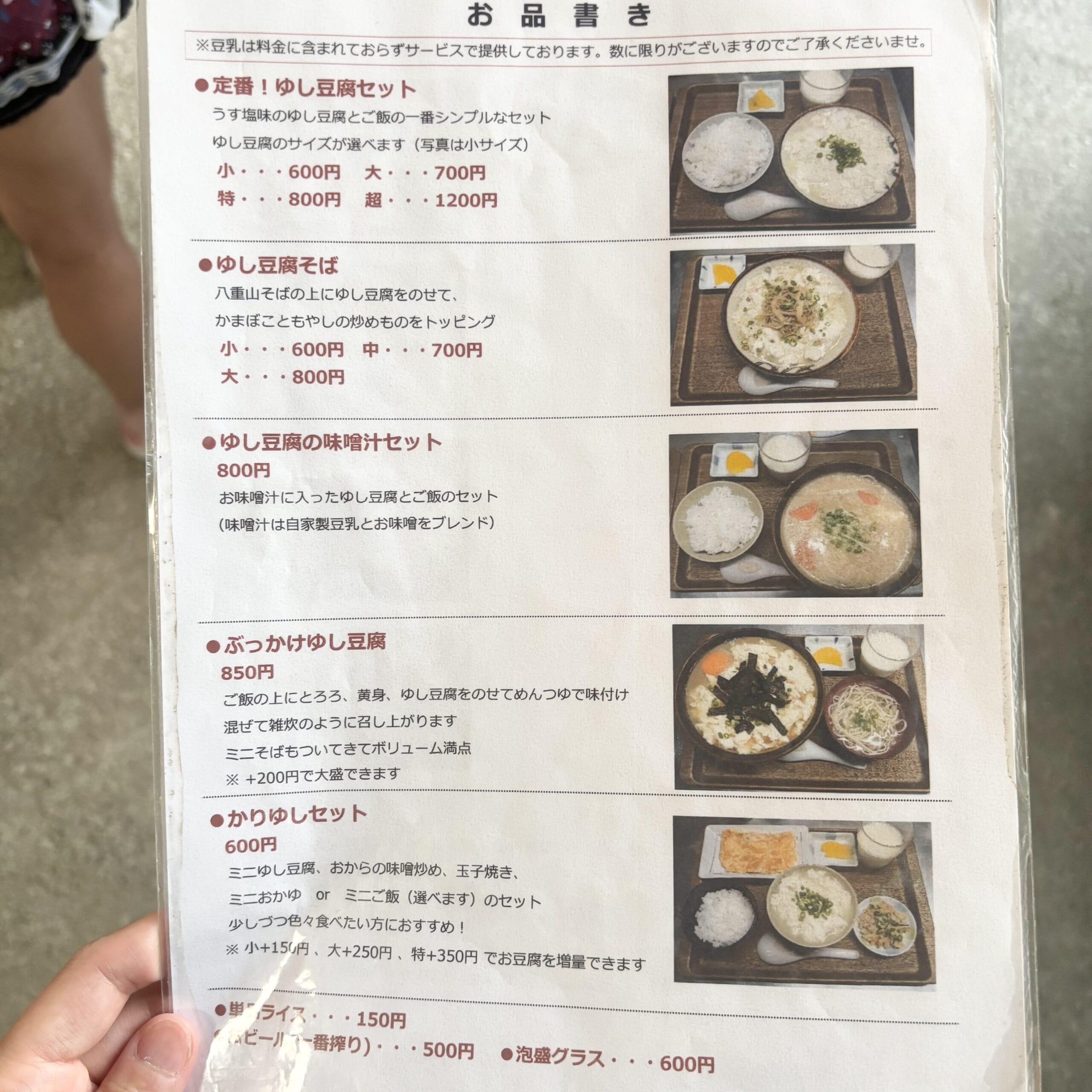 ごはんにゆし豆腐、豆乳など色んな味を少しずつ楽しめる内容で、バランスもよくて大満足そうでした。