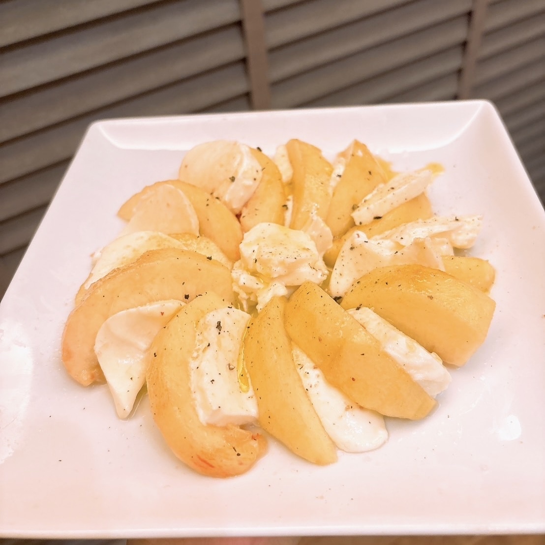まずは我が家の定番レシピ『桃モッツアレラ』。