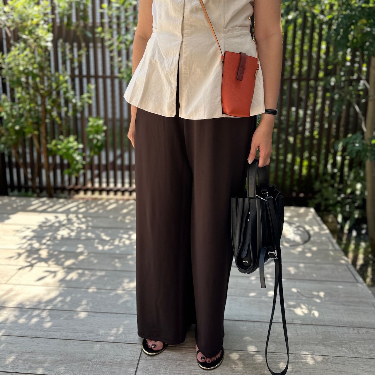 tops/ZARA pants/UNIQLO sandal/LAOCOONTE smartphone case/LOEWE bag/LUPO