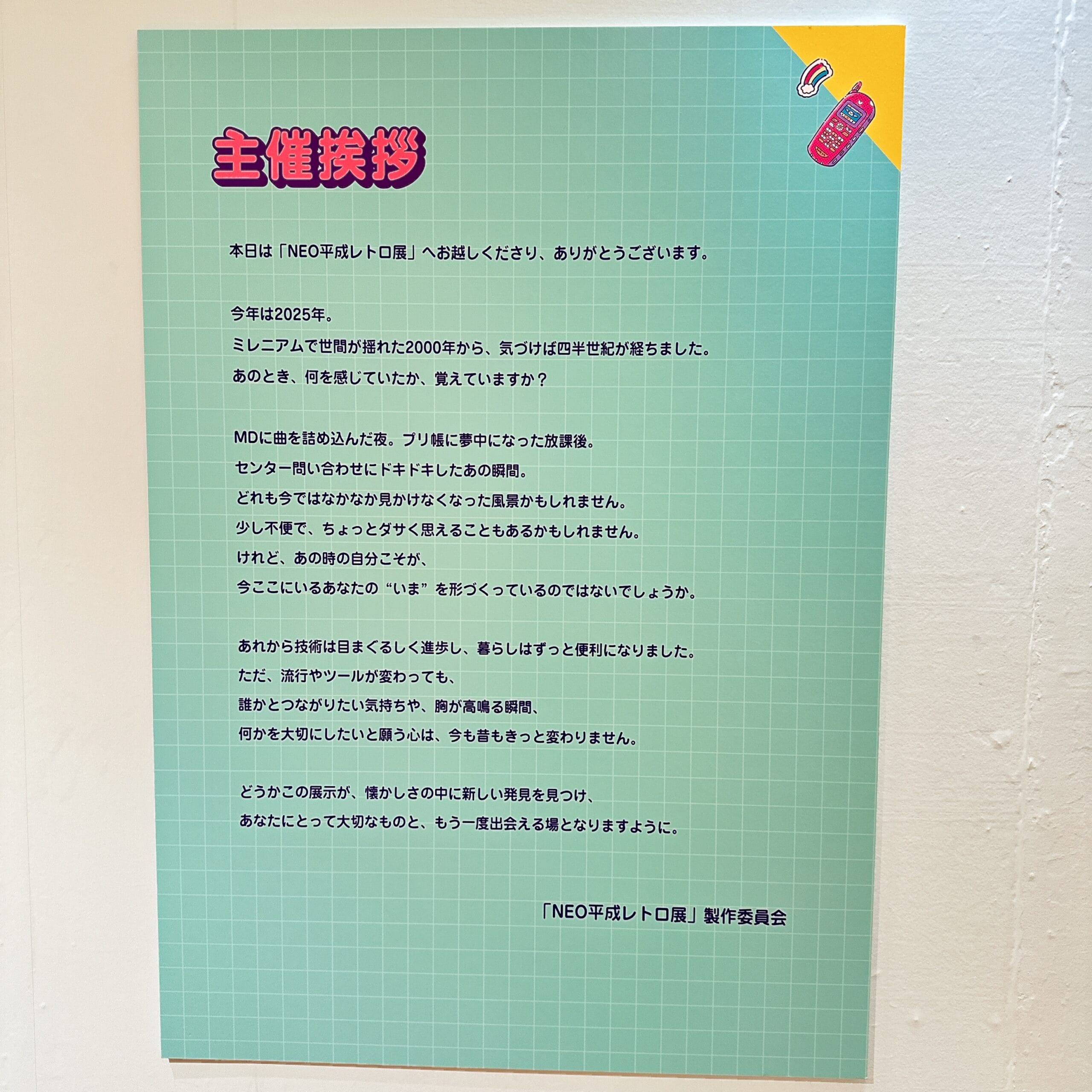 入口に掲示されていた「NEO平成レトロ展」 主催者さんの言葉がグッときました。