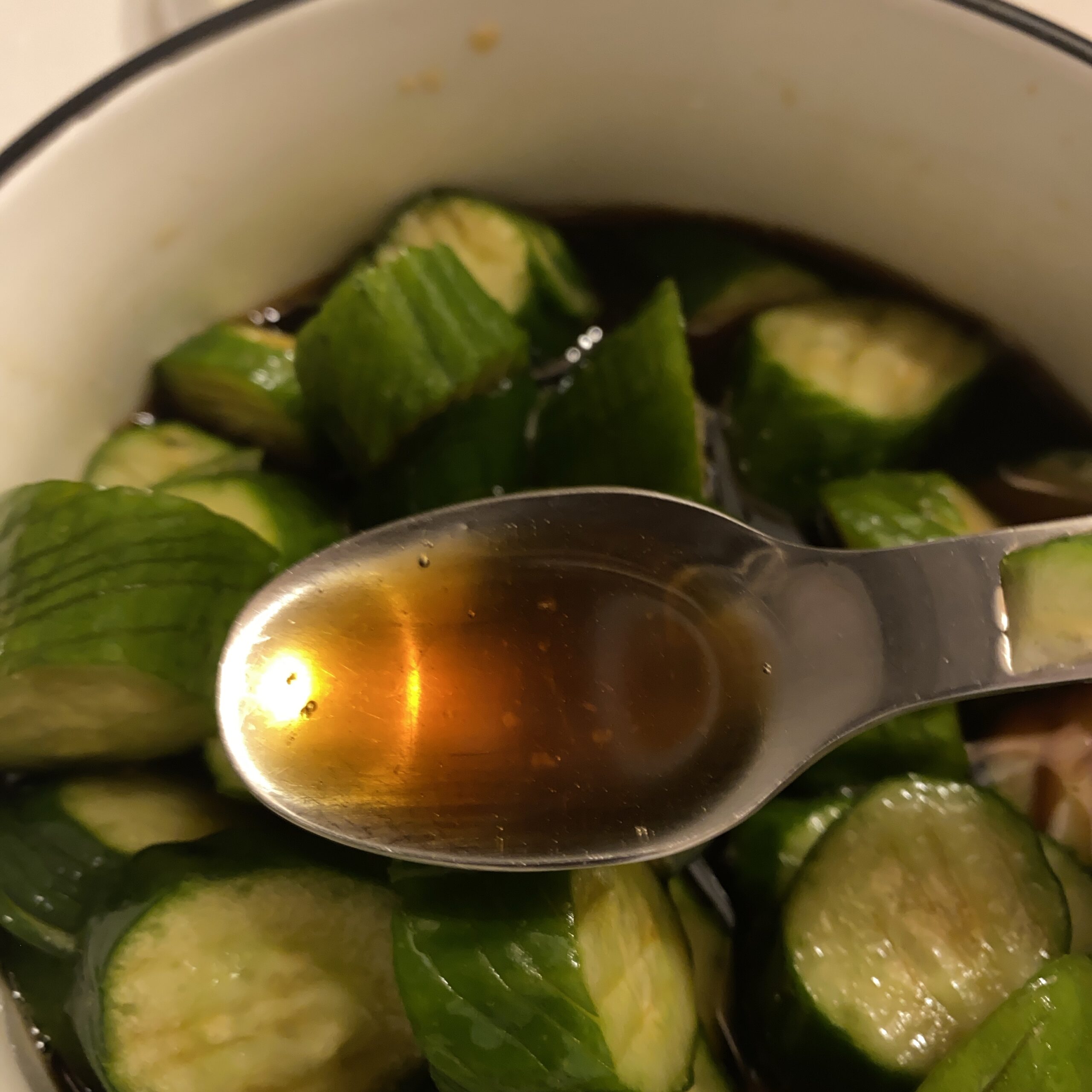 砂糖が溶けるまでよく混ぜて、切ったきゅうりを漬けていきます。