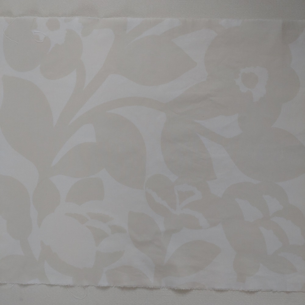 コーナーにあったときはクシャクシャで、シワからくる光の乱反射で柄がよくわからんかったのですが、アイロンを当てると浮かび上がる植物柄。この、わかるかなー?わからんかなー?の絶妙な具合が好き。