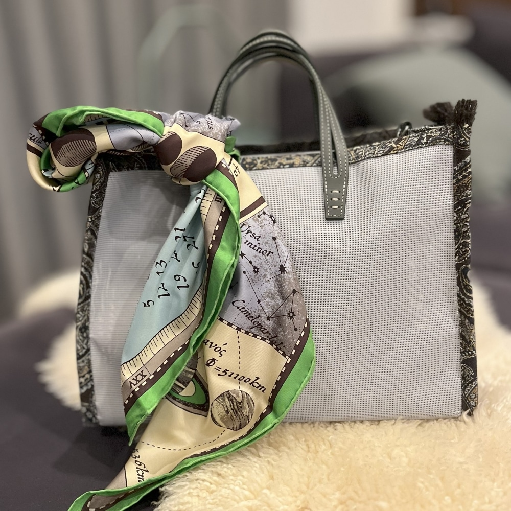 差し色にしたのは、マニプリの天体柄のスカーフ。