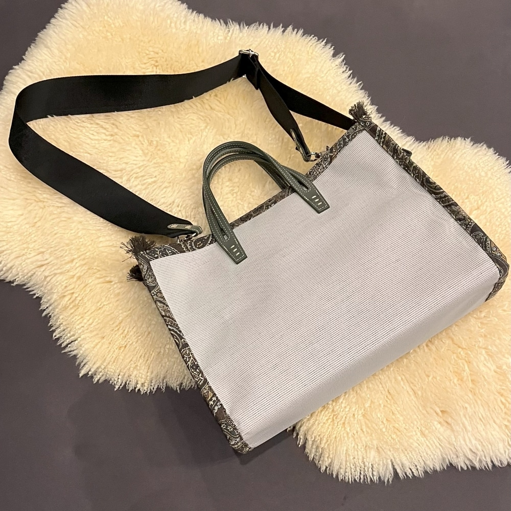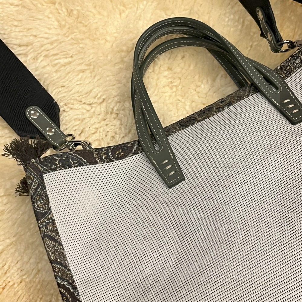 小さなフリンジや、ペイズリー柄の縁取りなど、細かな部分もとても素敵なバッグです。