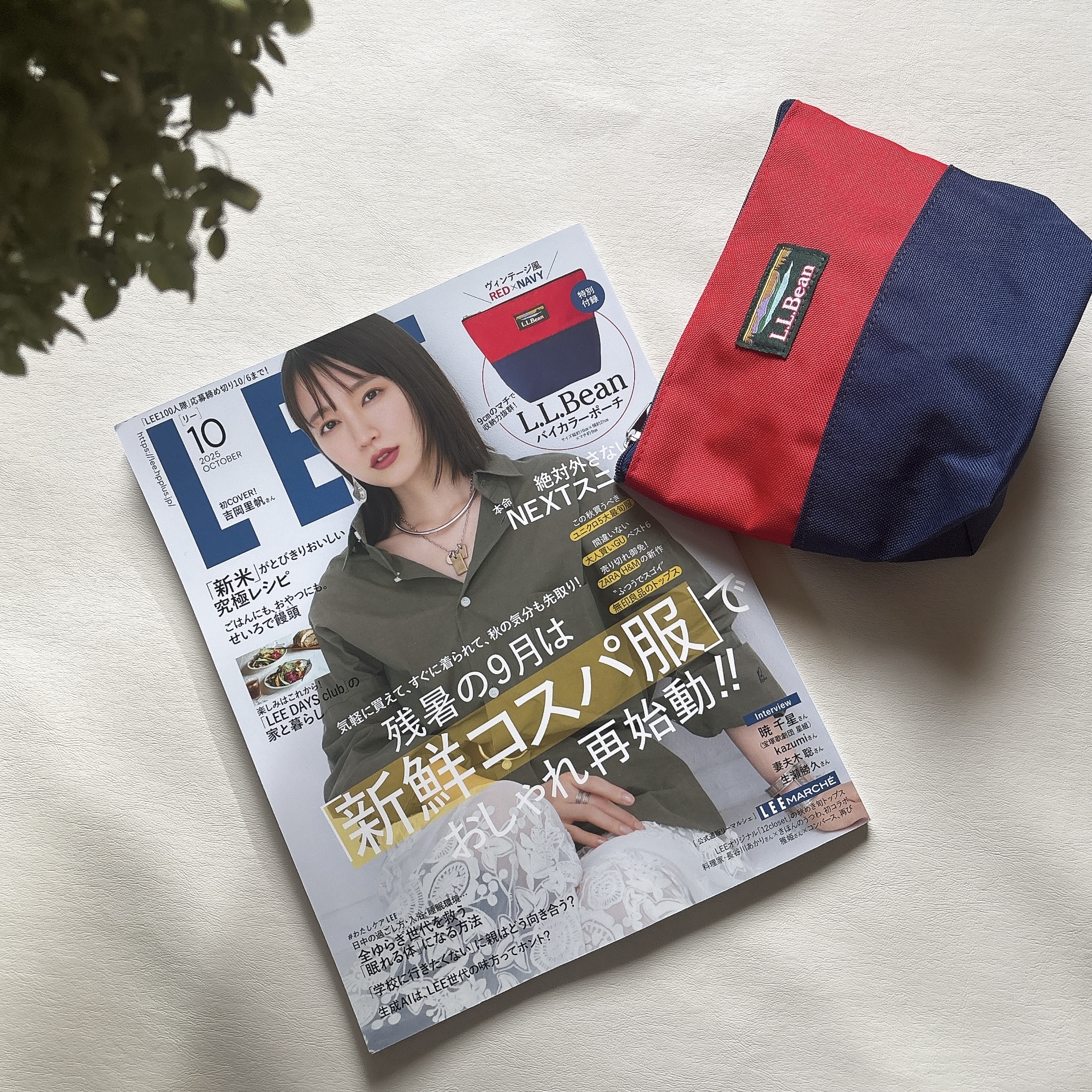 みんな大好きなL.L.Bean。今月号のLEE10月号には赤と紺色のカラーがおしゃれなバイカラーポーチが付録で付いてくるのです。