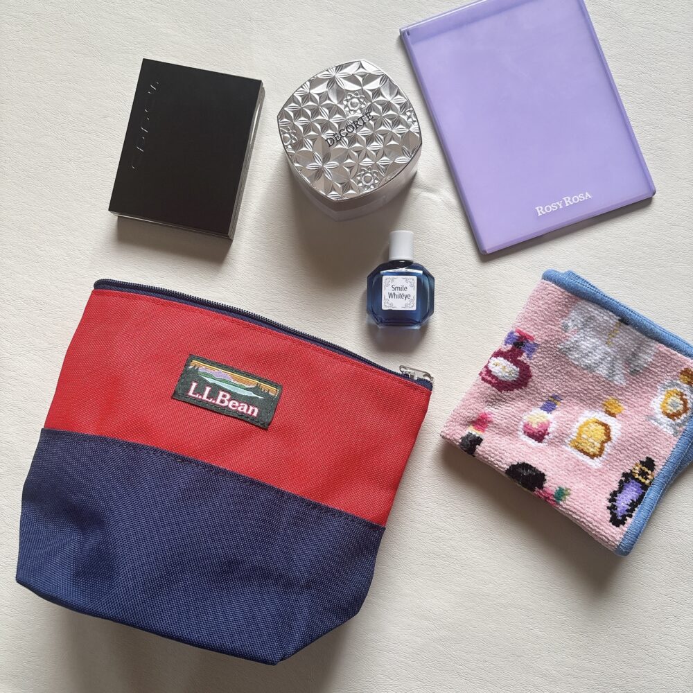どう伝えようか悩みまして。私の手持ちコスメの中で大好きなのにサイズ的に普段持ち運びを諦めているCOSME DECORTE のルースパウダーとSUQQUのシグニチャー カラー アイズ、リアルックミラーがもしかしたら入るのではないか?と思って試してみた。