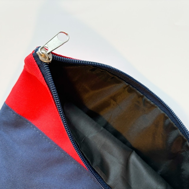 中はネイビーのつるっとした素材で、汚れが付着しても目立ちにくいのが嬉しいですね。
