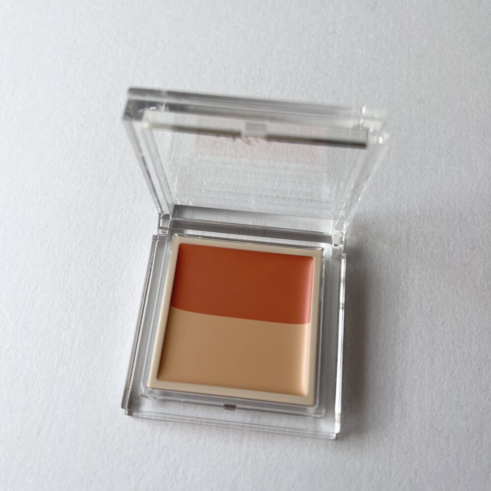 オレンジをクマの目立つ部分に置き、その上にベージュを乗せると色がなじみ、クマが目立ちにくくなります。