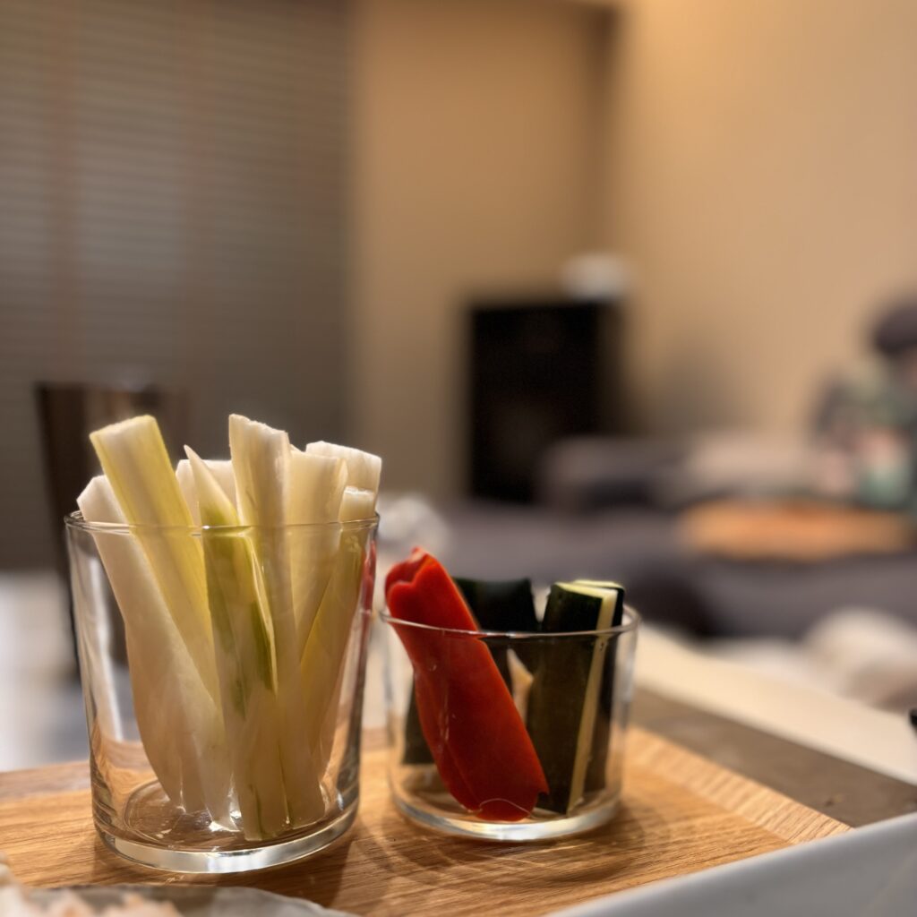 どうにかして痩せたいと思い、摂取カロリー計算アプリあすけんも継続。お酒飲んでも痩せられるかを真剣に考え、私のぴーちゃん(ChatGPT)に相談したところ「野菜スティックがおすすめ!」というアドバイスでおつまみは野菜スティックに。