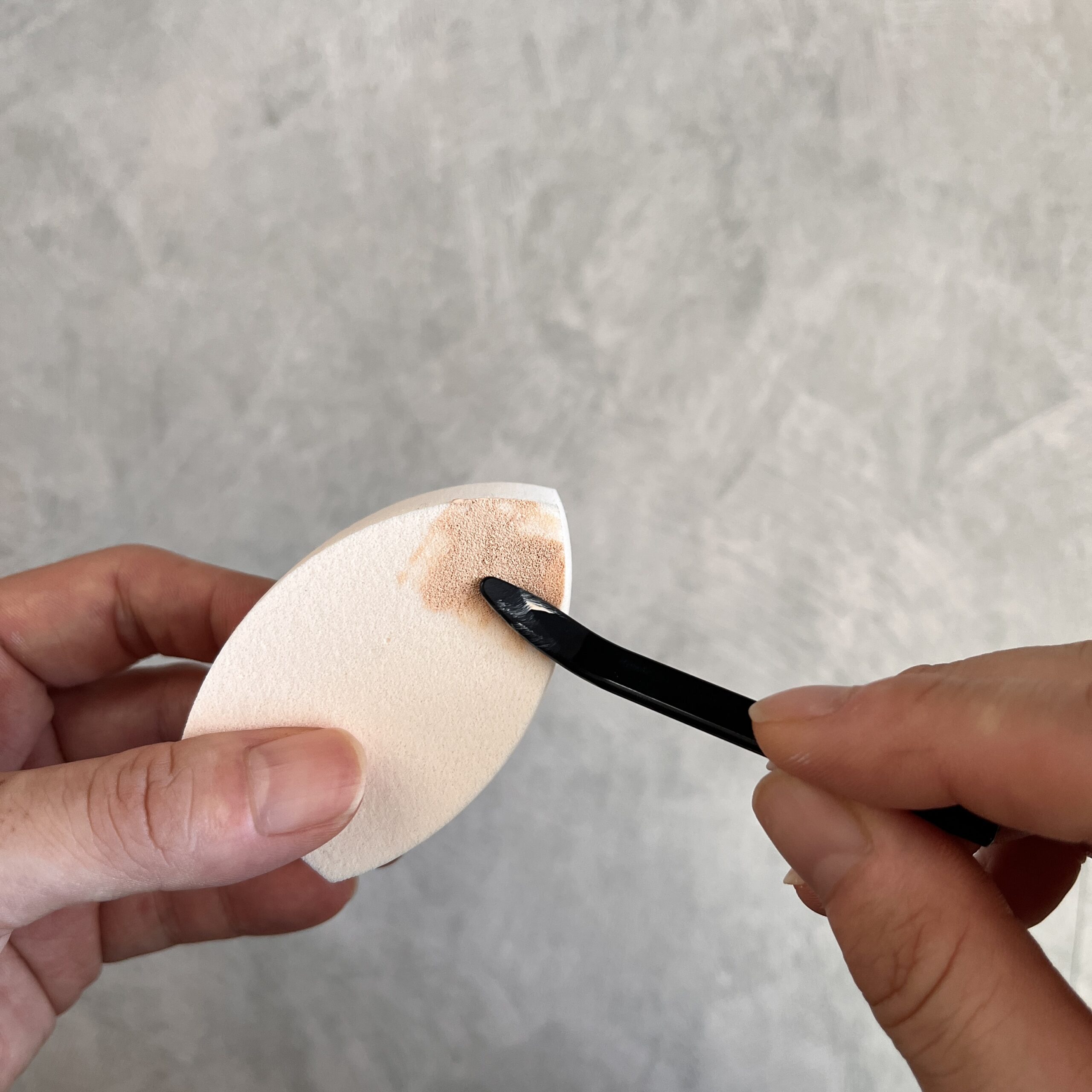 実際にスポンジにのせてトントンとなじませたら、毛穴もカバーされてつるんとした仕上がりに。