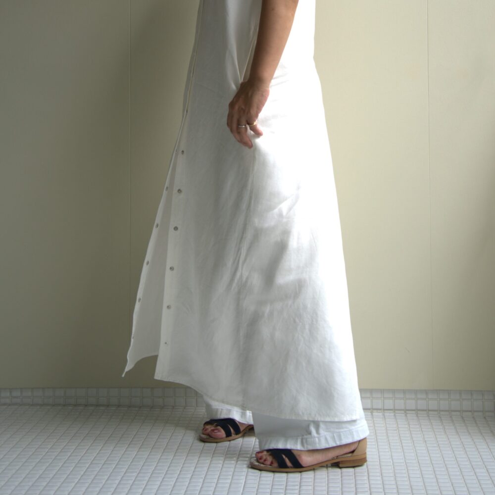 ワンピースですが、後ろは深めのスリットが入っていてレイヤードが前提です。