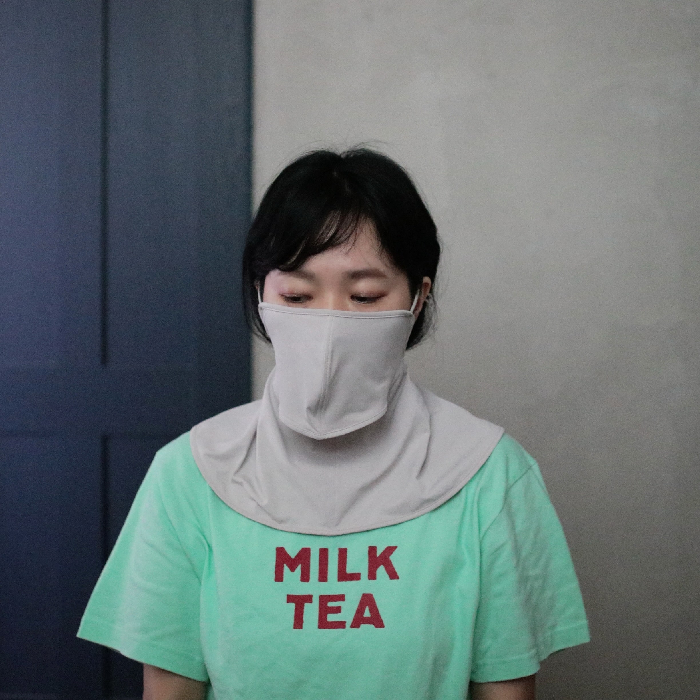 この猛暑の中、顔や首を覆うなんて…とずっと思っていましたが、この接触冷感の生地が肌に心地よく、つけている方がひやっとするような感覚があって気持ちいいんですよね。