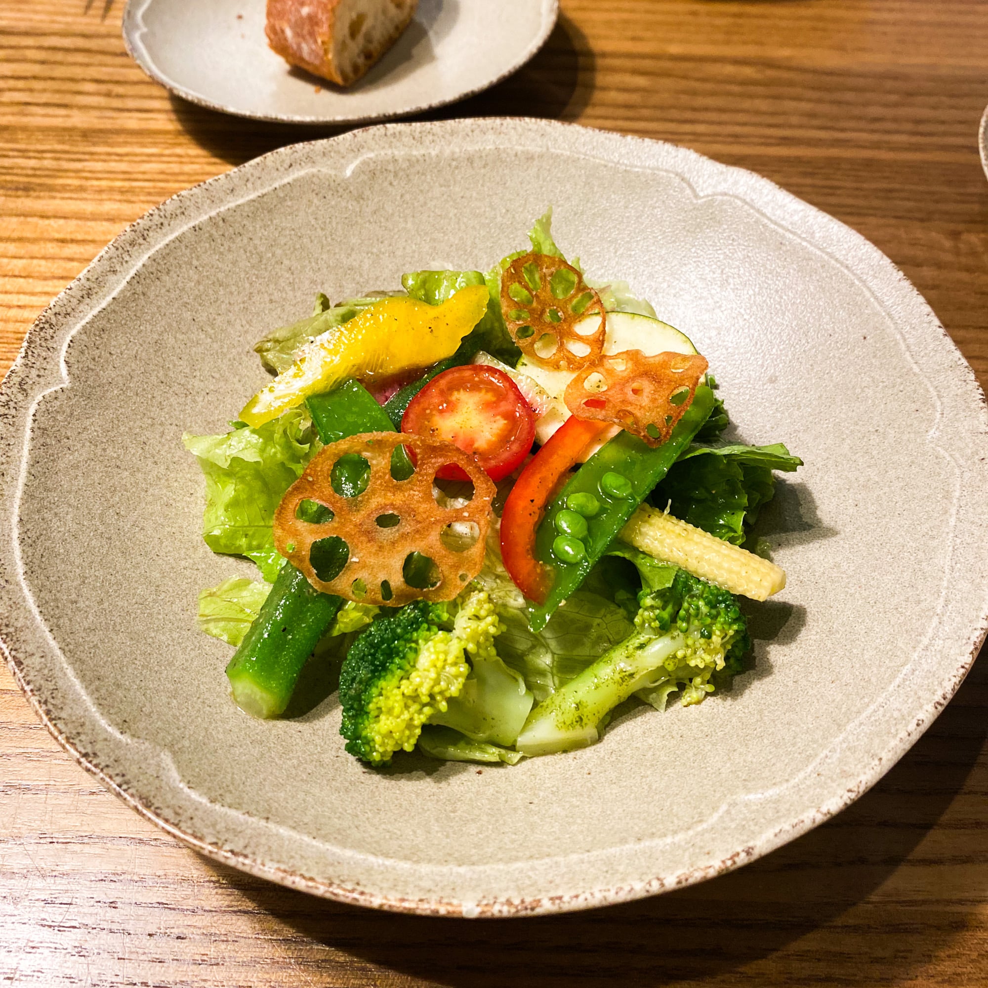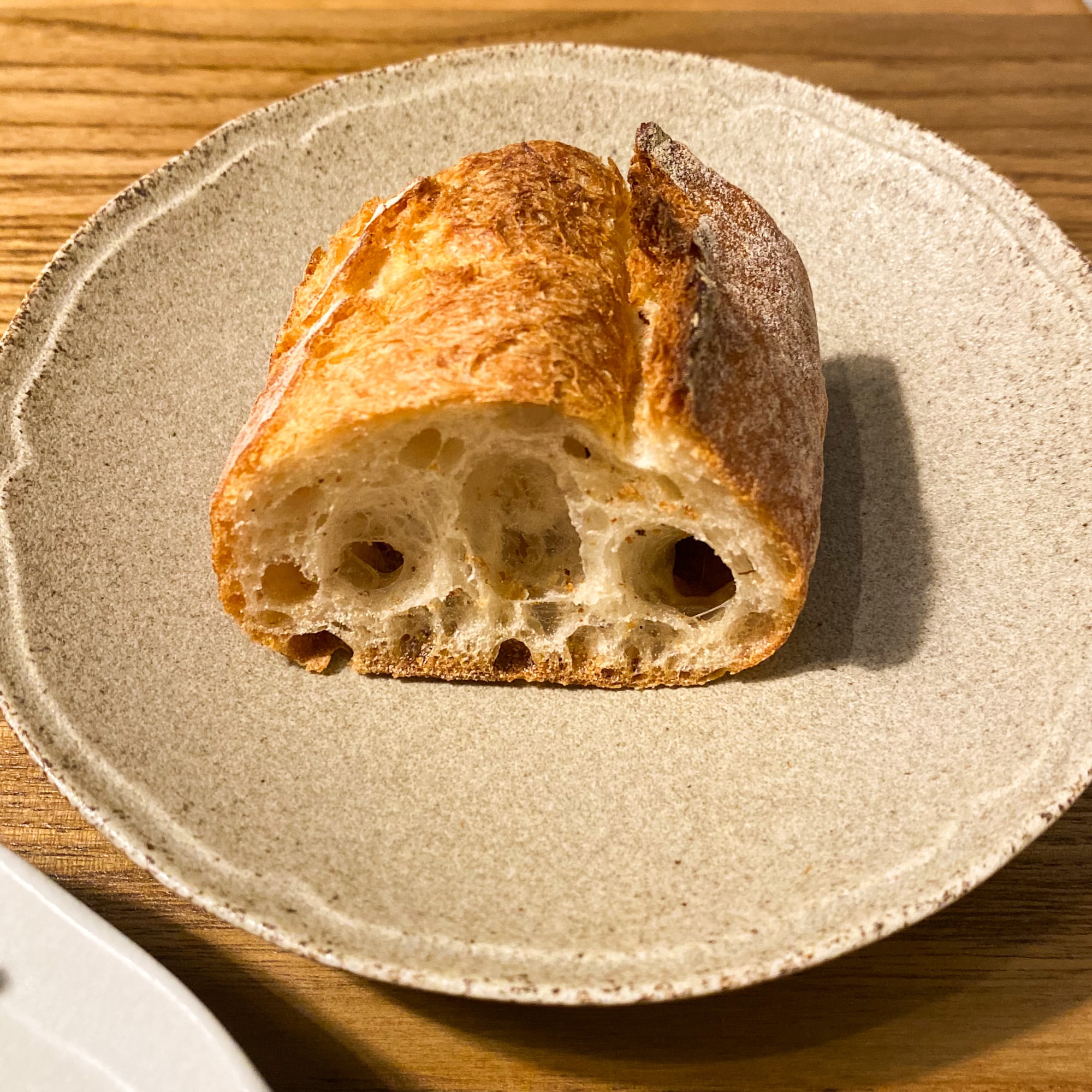 バゲットも付いてきます。こちらも福岡で有名なパン屋さんMOROPAIN(モロパン)のバゲット。ちょっとずつかじっていって・・・メインがやってきました。