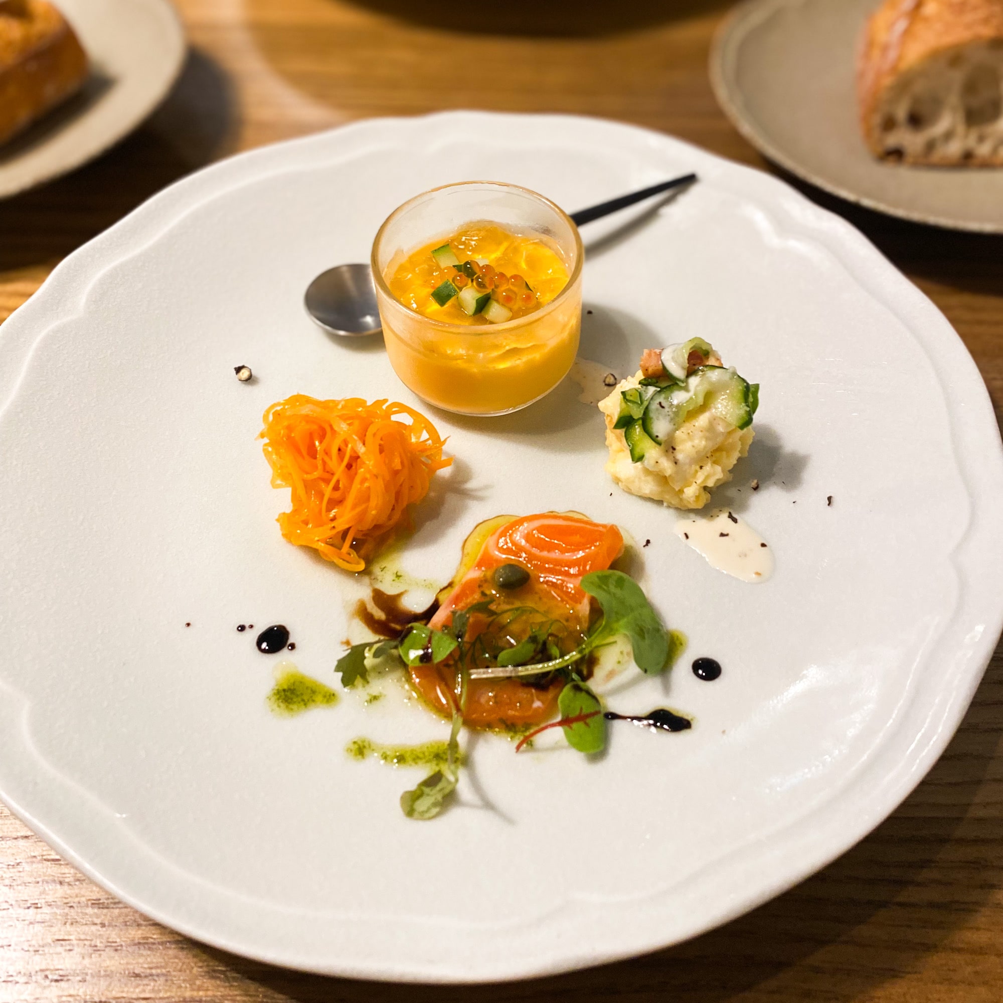 見た目にも鮮やかなプレート。特にこのグラスに入ったジュレが酸味とお出汁が効いていてゼッピンでした。そして