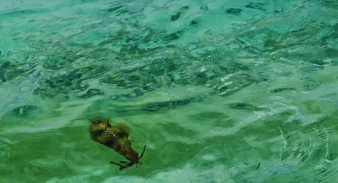 足元近くまで大きなお魚やイカがヒラヒラと泳いでいるのが水面から見えました。沖縄すごい!シュノーケルしたかった😭