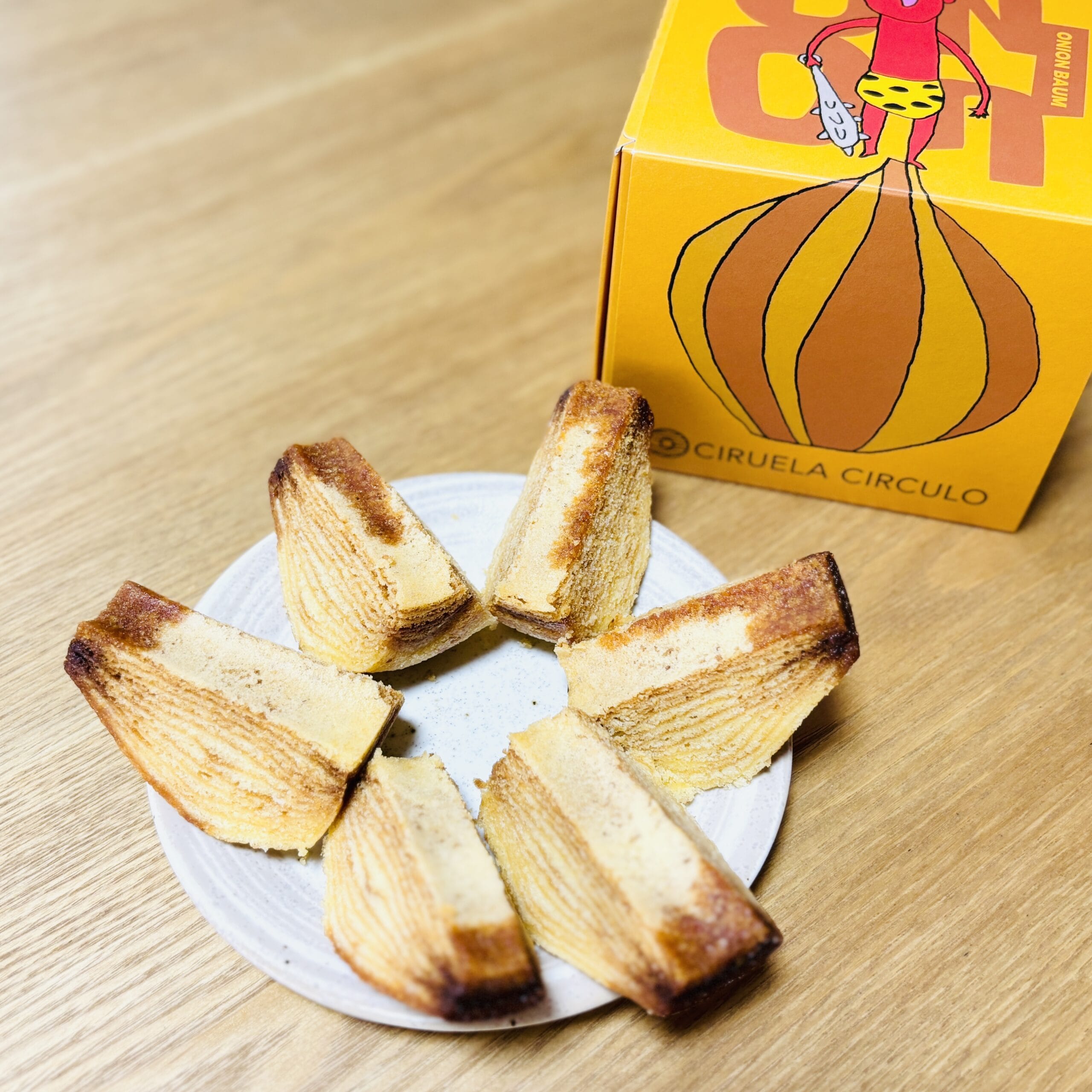 玉ねぎは入っていないですが、玉ねぎの形がキュンとするバウムクーヘンです。