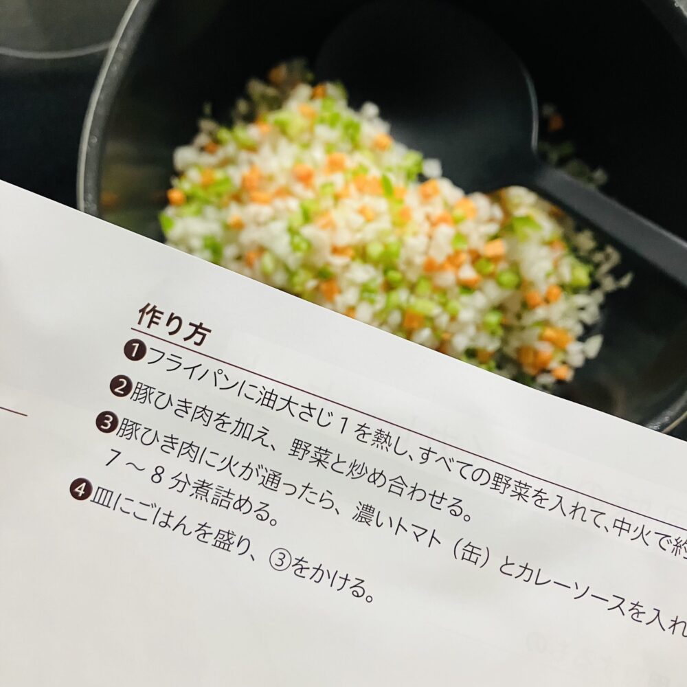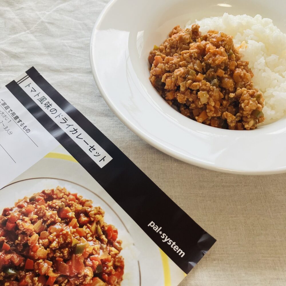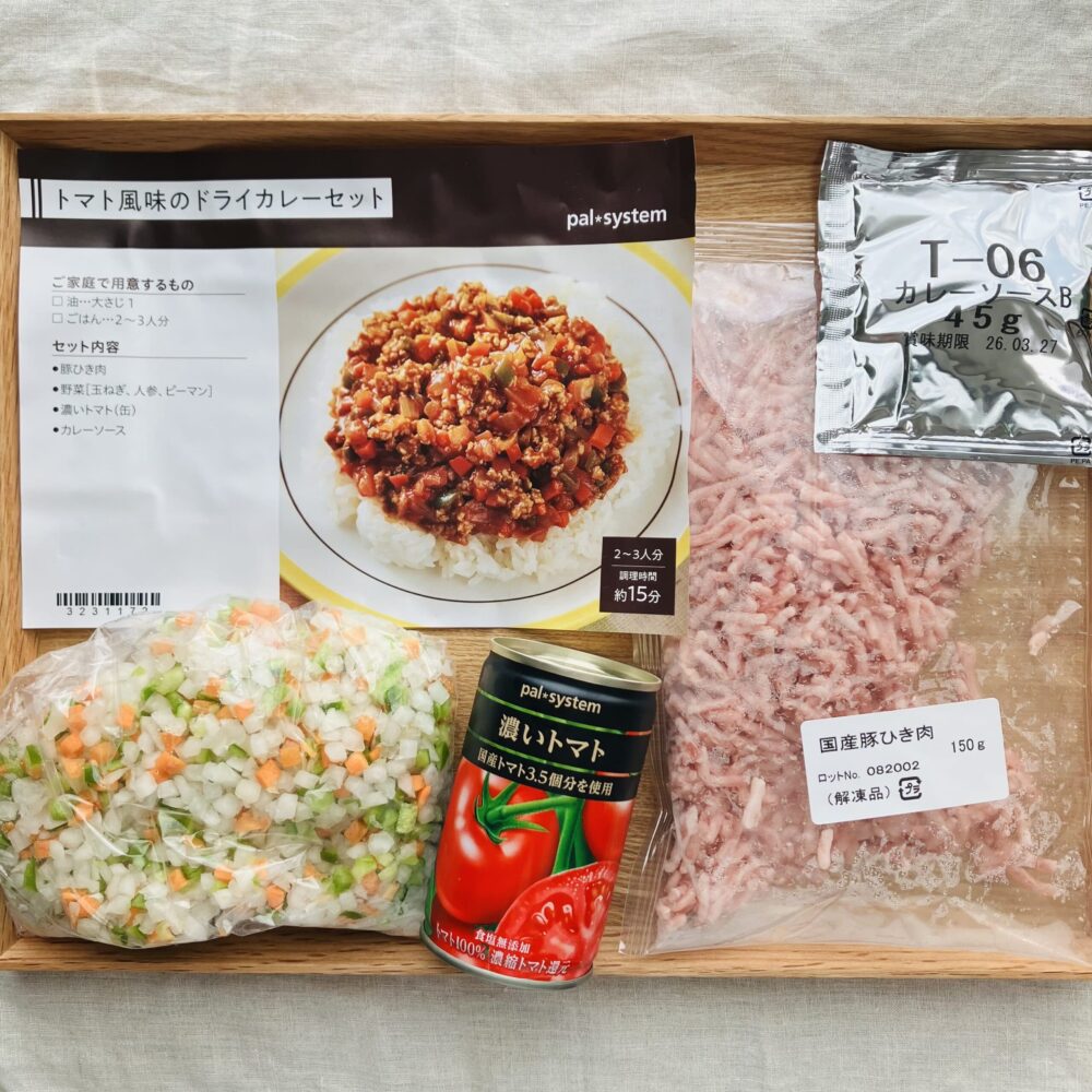 素材は全てカットされた状態で入っていて、トマト風味のドライカレーセットは、油とごはんを用意するだけでした。
