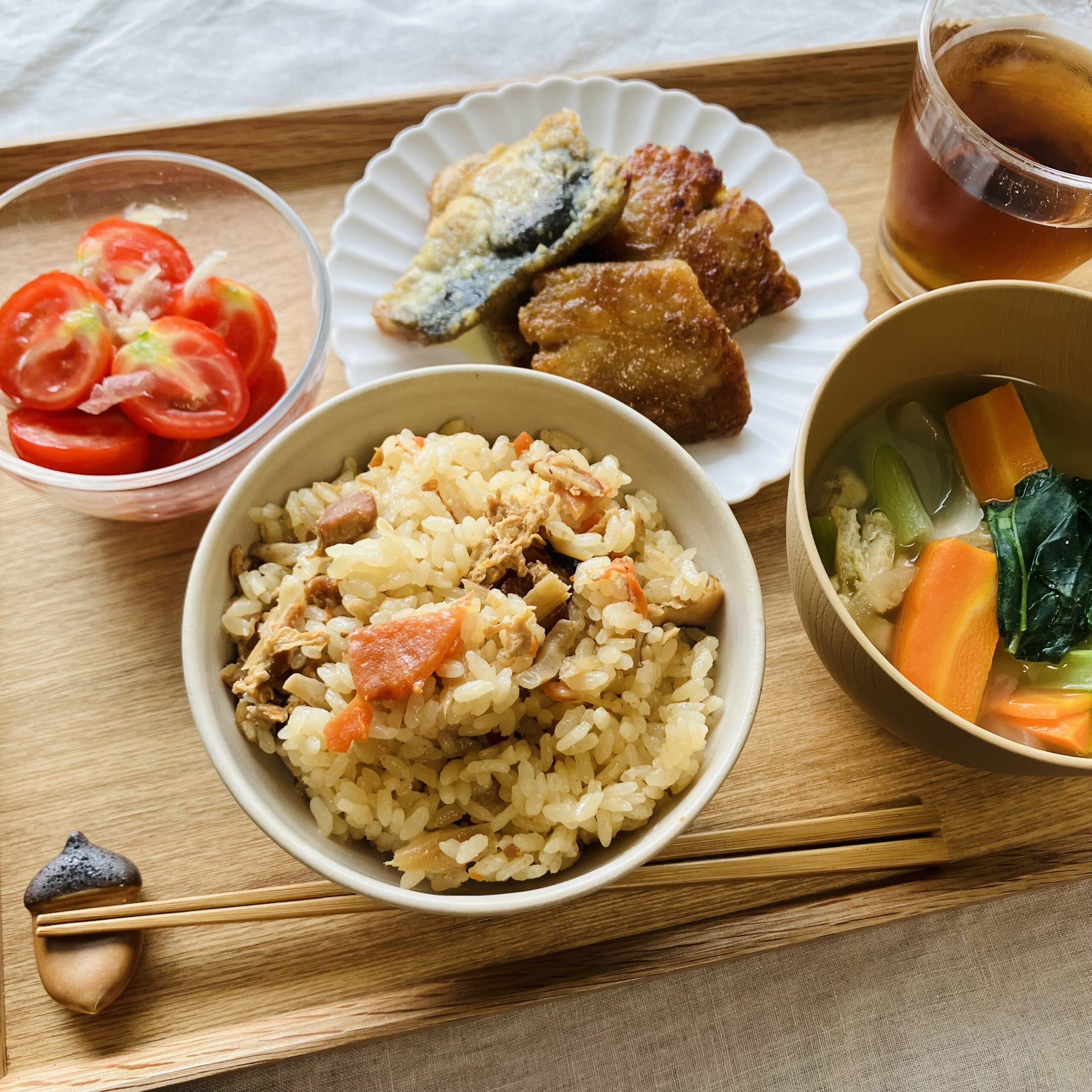 この日も冷凍品を活用!お気に入りのしめさばは、冷蔵約1時間解凍、または3~5分の流水解凍なので、あと一品欲しいときのお助けアイテム。までっこ鶏手羽中も朝に冷蔵庫へ入れ、夕食にオーブン調理。素材の良さだからこそ。