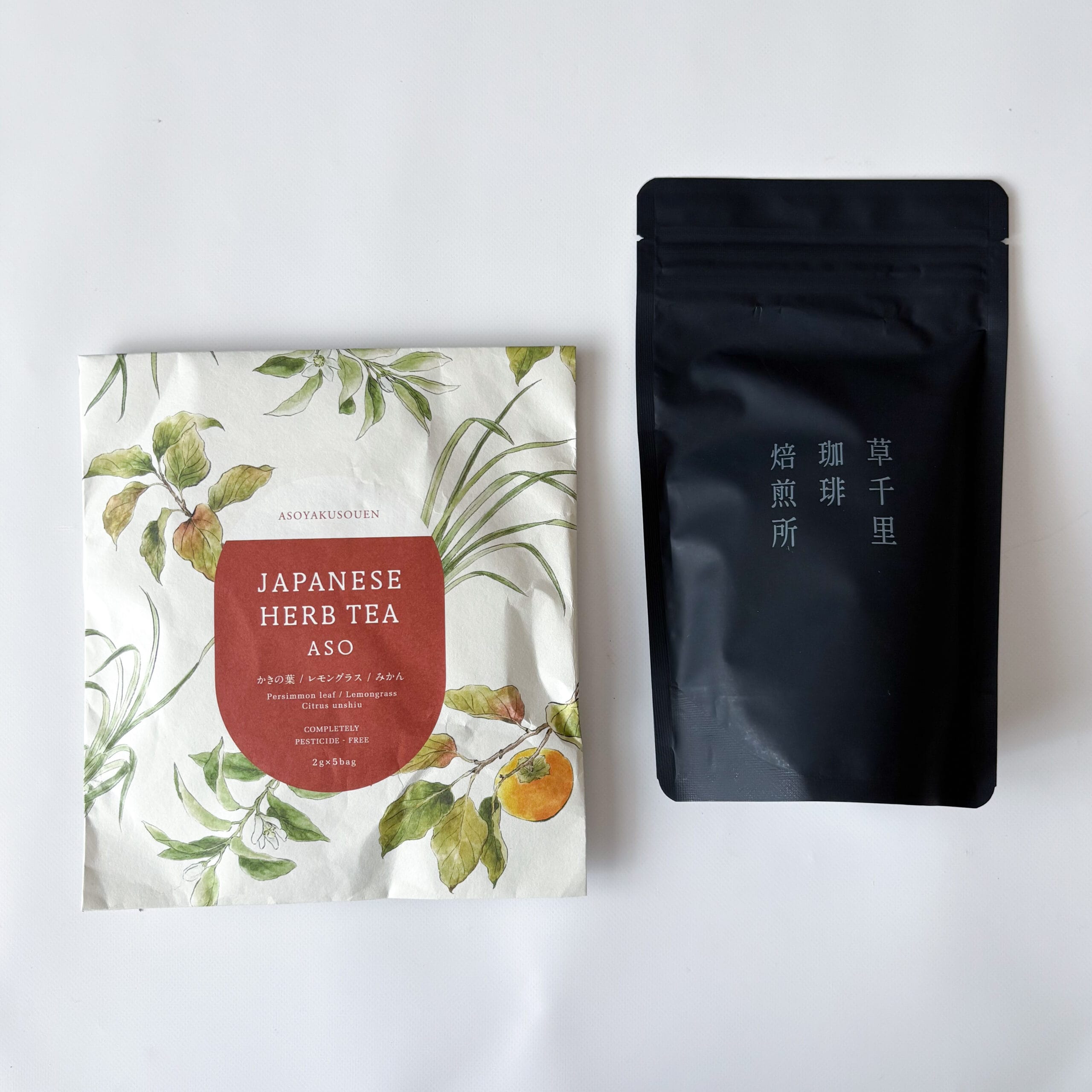 草千里ヶ浜におしゃれな珈琲専門のカフェとショップがありました。そこで購入したのは、コーヒー豆とハーブティーです。