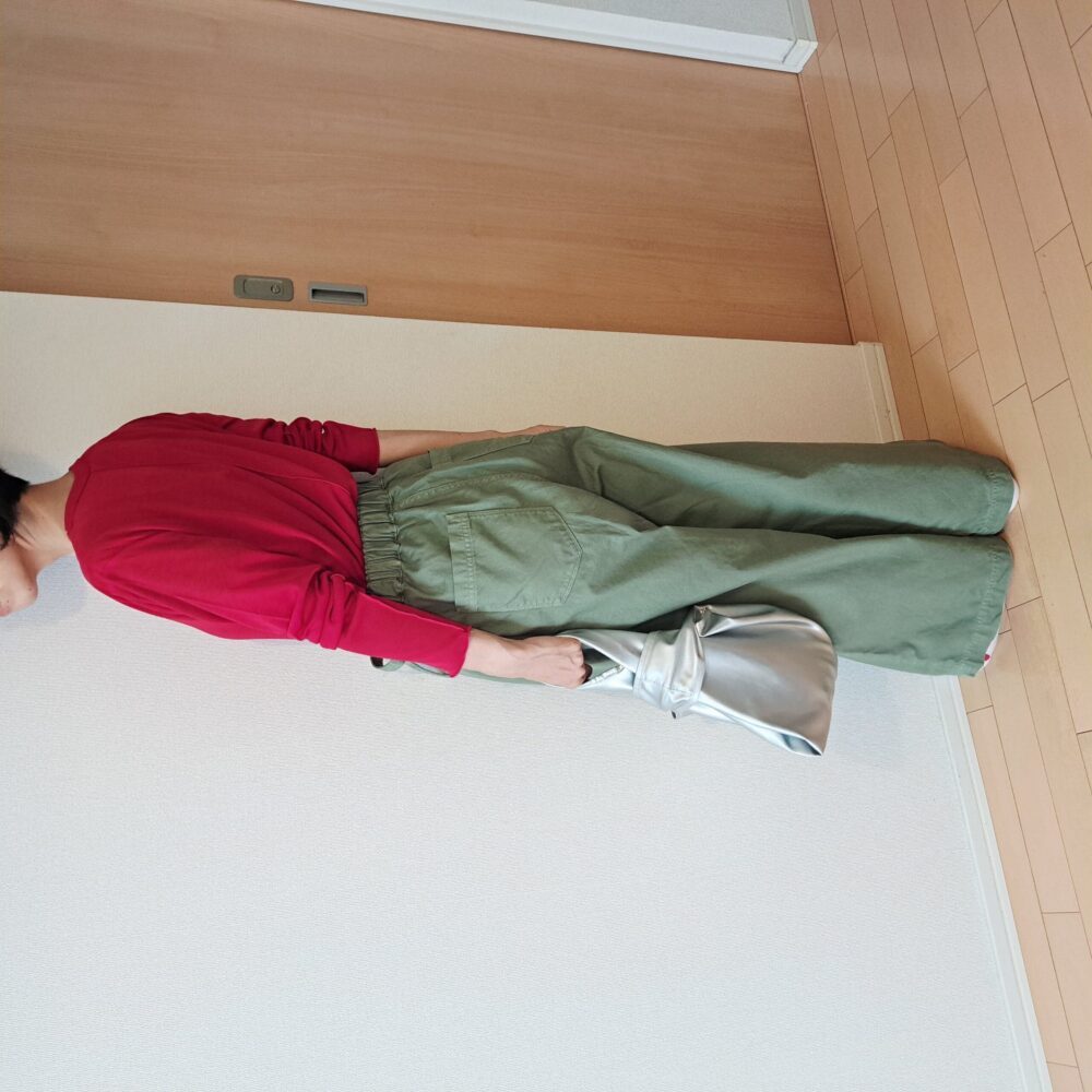 この春頃からカーキのパンツを探していて、なかなか自分にフィットするものを見つけられないでいた頃、京都の藤井大丸の「 Harriss」でその話をしていたら、「これ!履いてみて!」と持ってきてくださったものです。