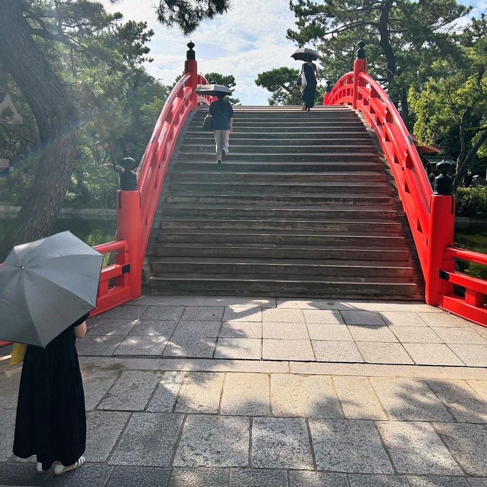 住吉大社をゆったりと散策。『住吉っさん』で親しまれている大阪でも有名な神社です。反橋は渡るだけで厄除けになるそうです。