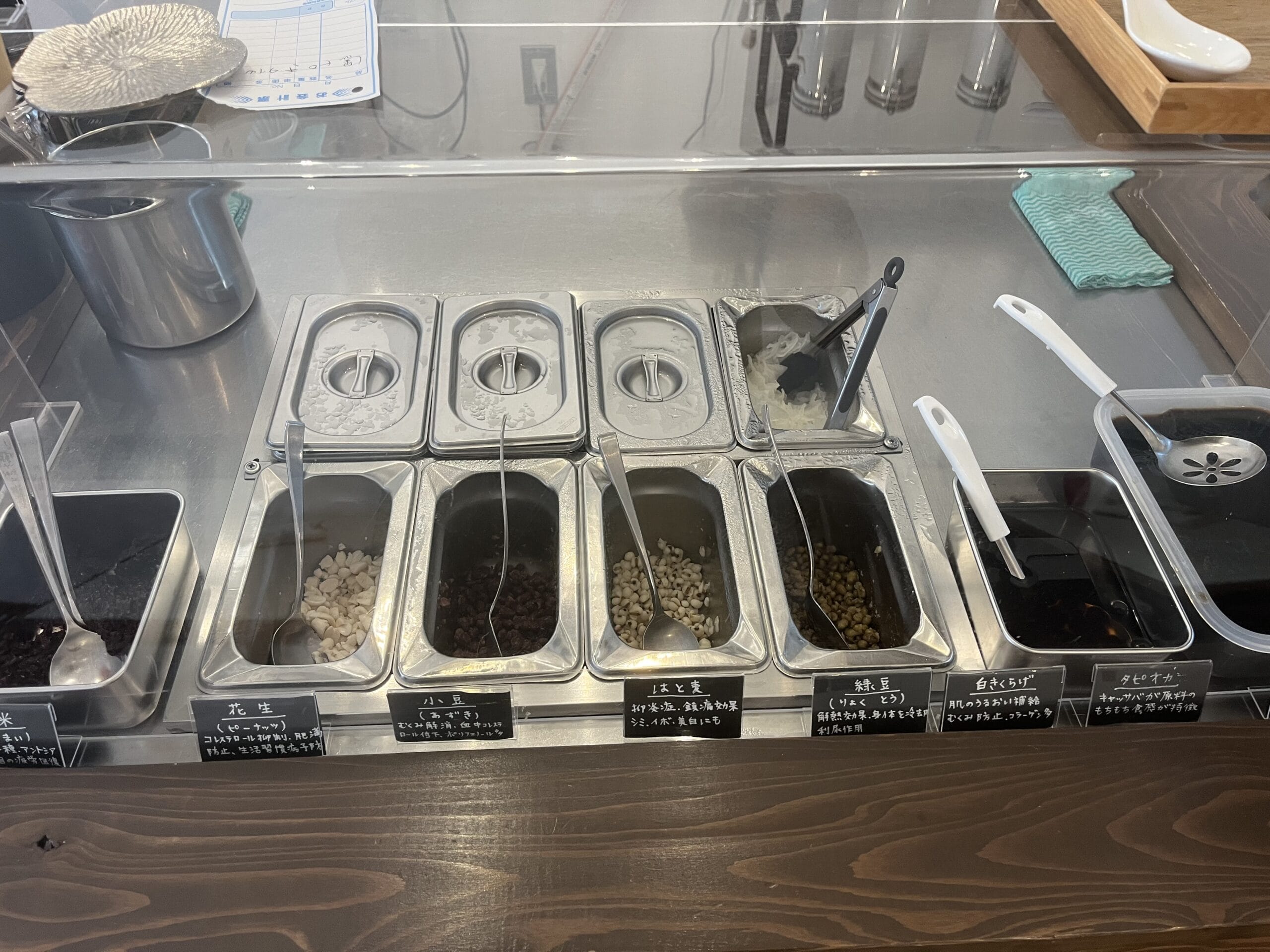 初めてなので今回は総合豆花に。レジで先にお会計を済まし、トッピングを5種類選ぶようです。
