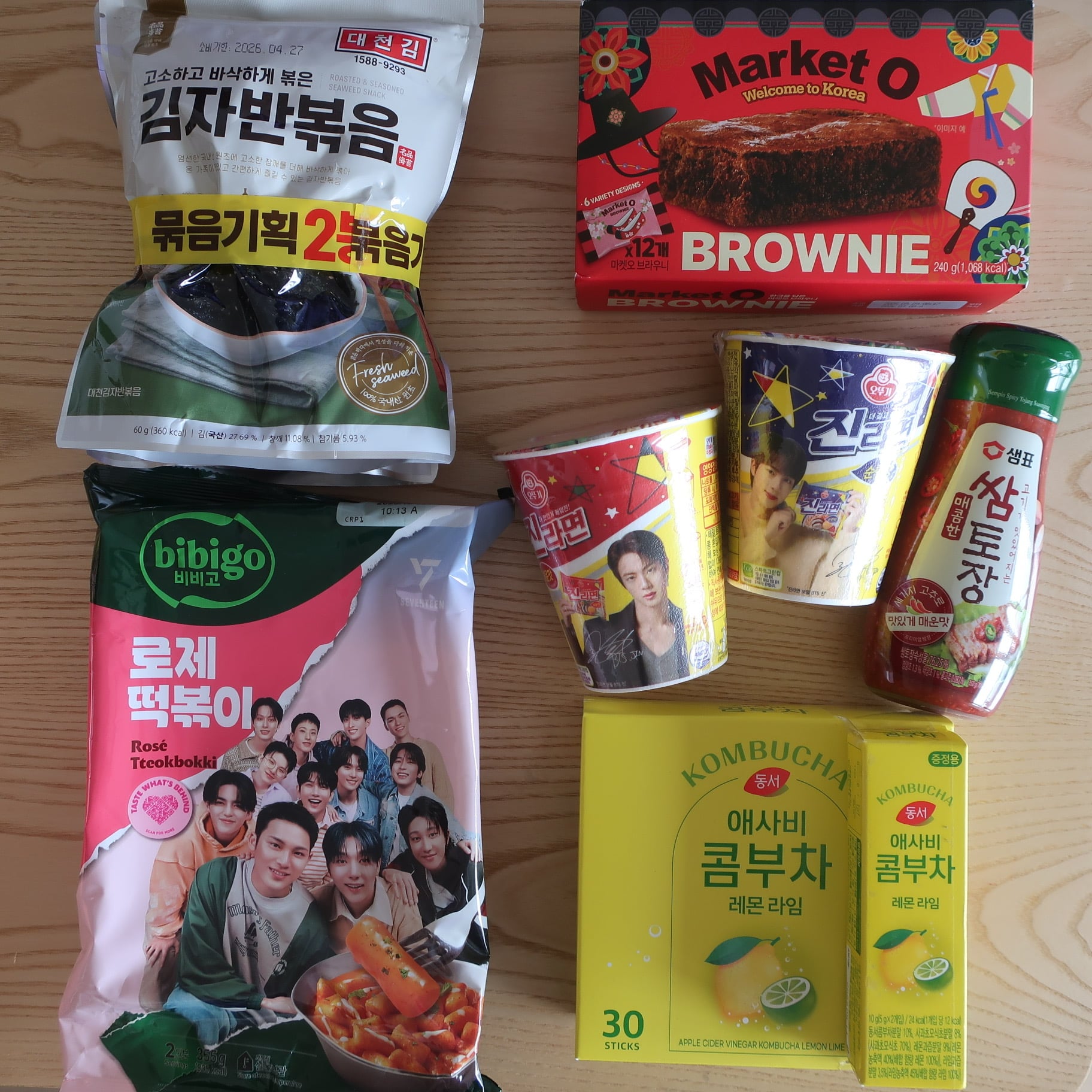 最後に、お得パッケージの コンブチャを。2つ買うと半額になるプロモーション中で、同行していた後輩ちゃんとシェアして購入しました。韓国のスーパーはこういうまとめ買いの楽しさがあるのも魅力です。