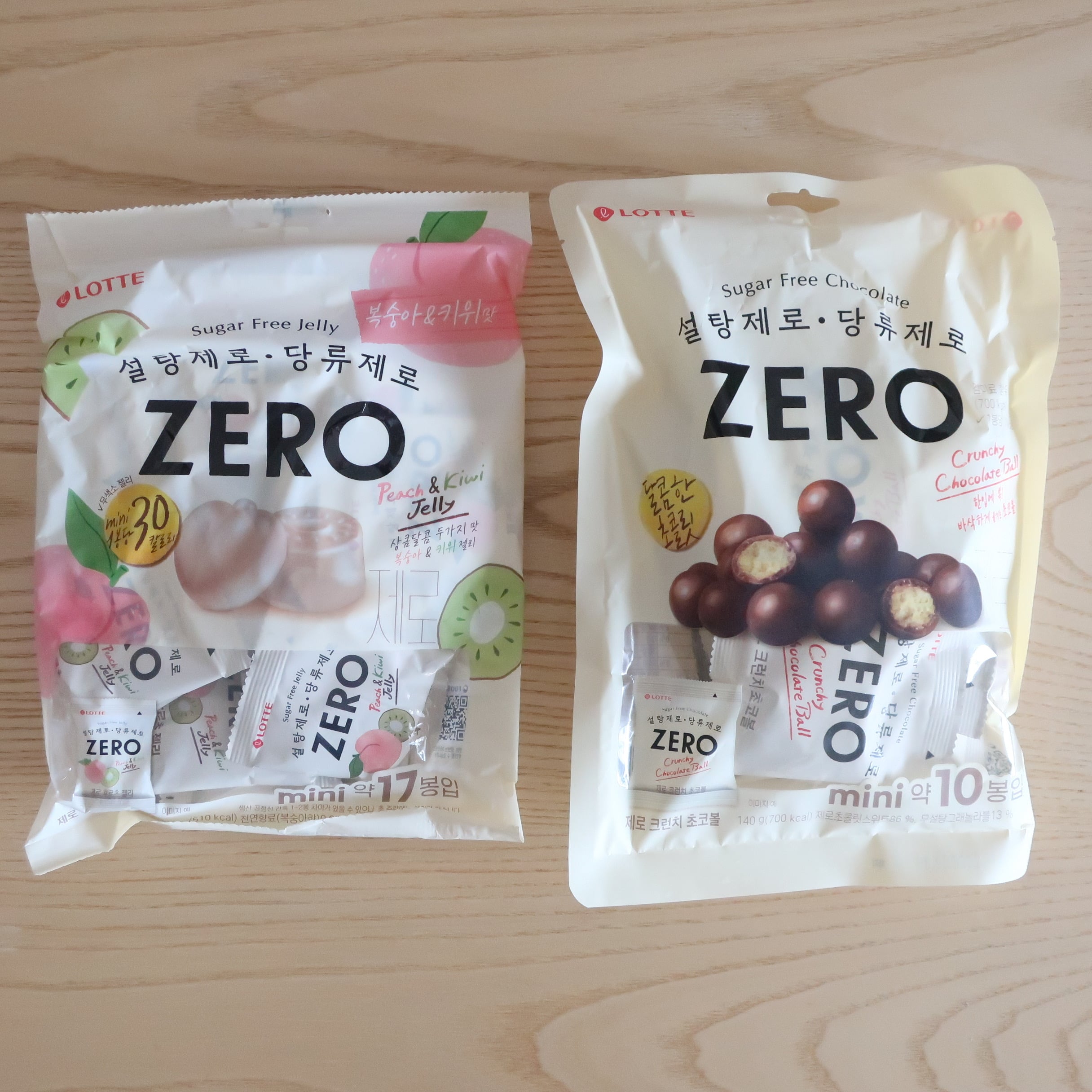 次に目を引いたのは、ロッテのゼロシリーズ。砂糖不使用なのに美味しいと評判で、私はチョコレートとピーチグミを選びました。