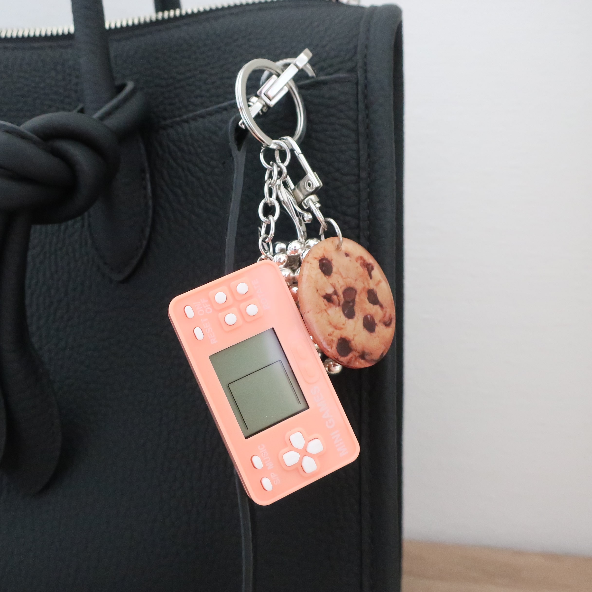 レトロなゲーム機型チャーム。電池も入っていて、ゲームもプレイできます!
