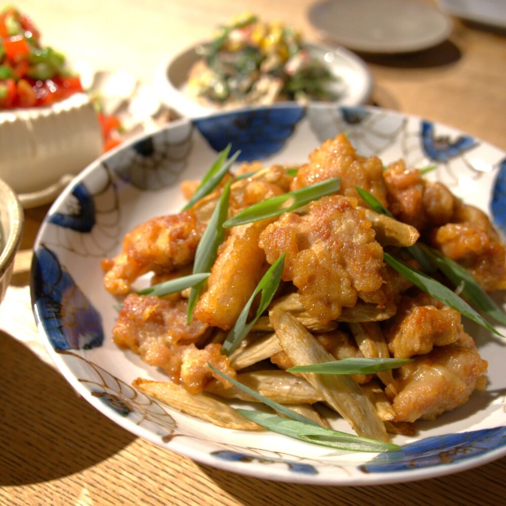 こちらはワタナベマキさんのレシピ「鶏むねとごぼうの甘酢」です。