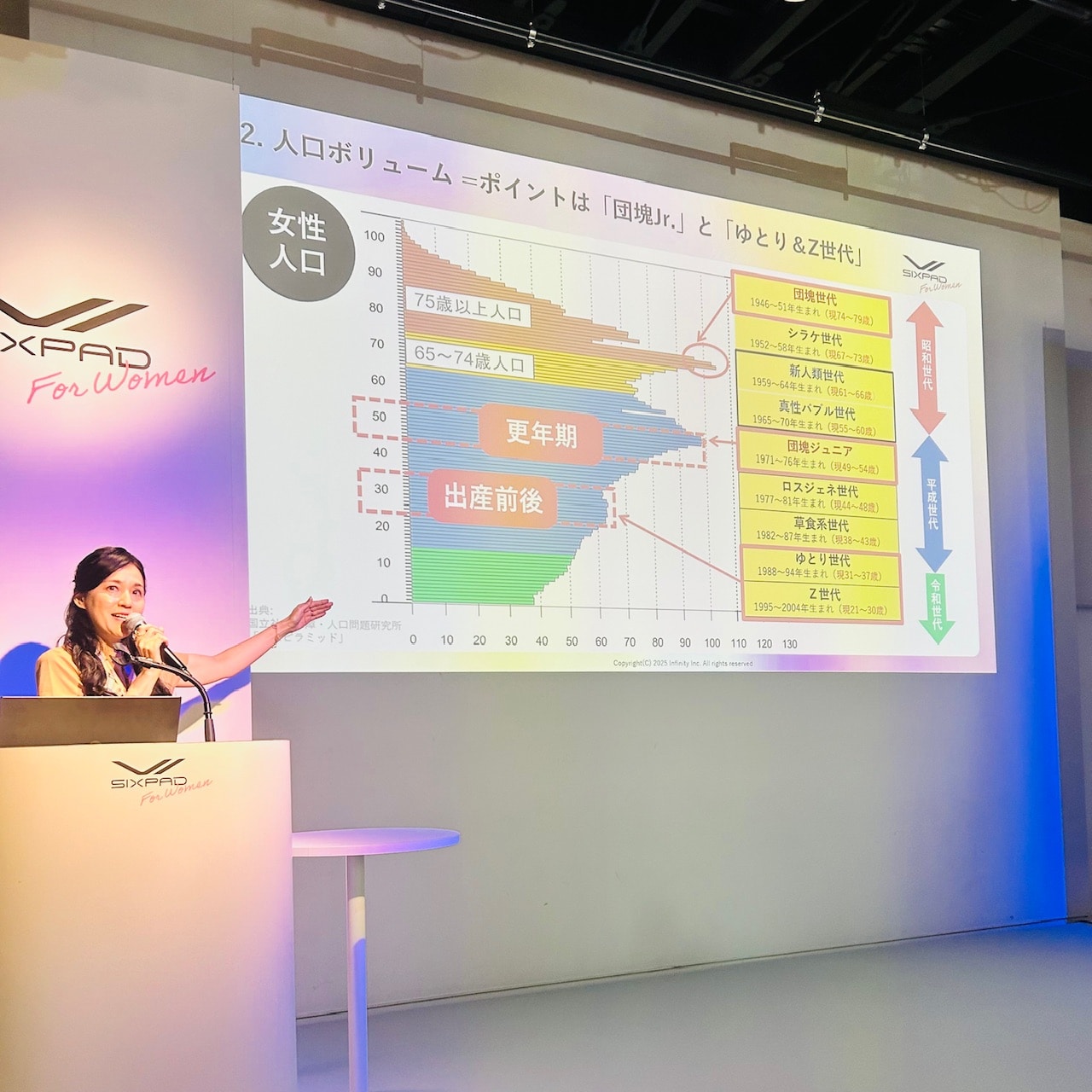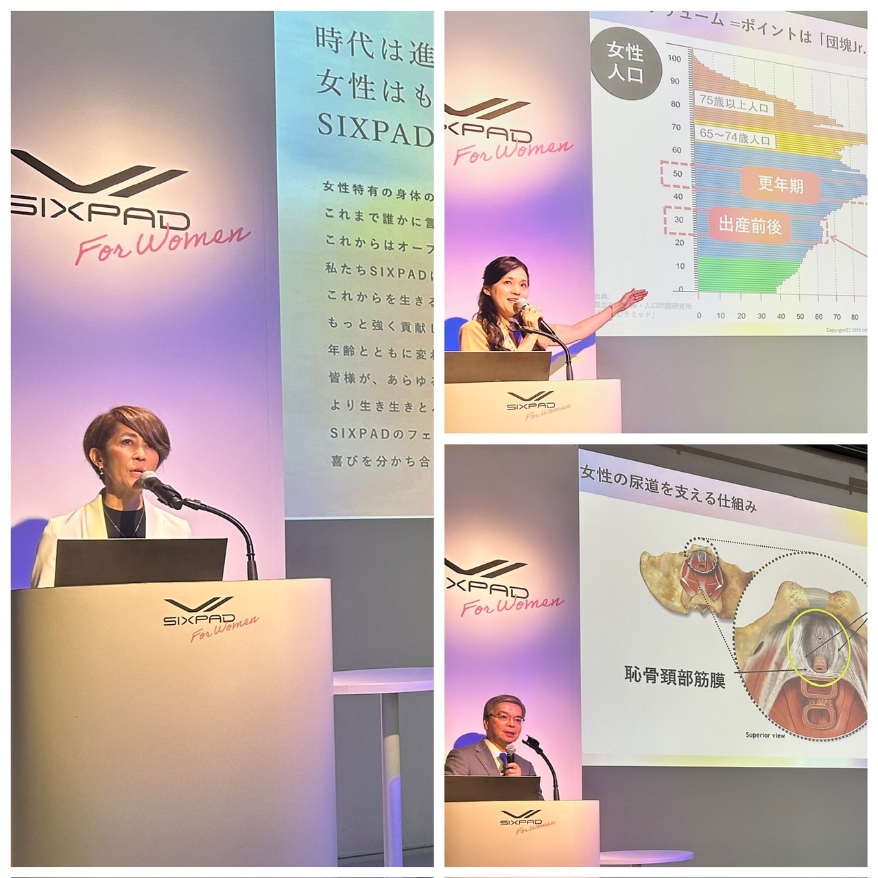 講演会は、SIXPAD本部 本部⾧ 石谷桂子さんの力強い事業説明、世代・トレンド評論家 牛窪 恵さんの「女性活躍」からの鋭い視点、日本大学 医学部教授 高橋 悟先生による様々なエビデンスに基づいた医学の視点など、フェムケア・フェムテックの最新の潮流に関わる、ためになる情報がギュッと詰め込まれていました。