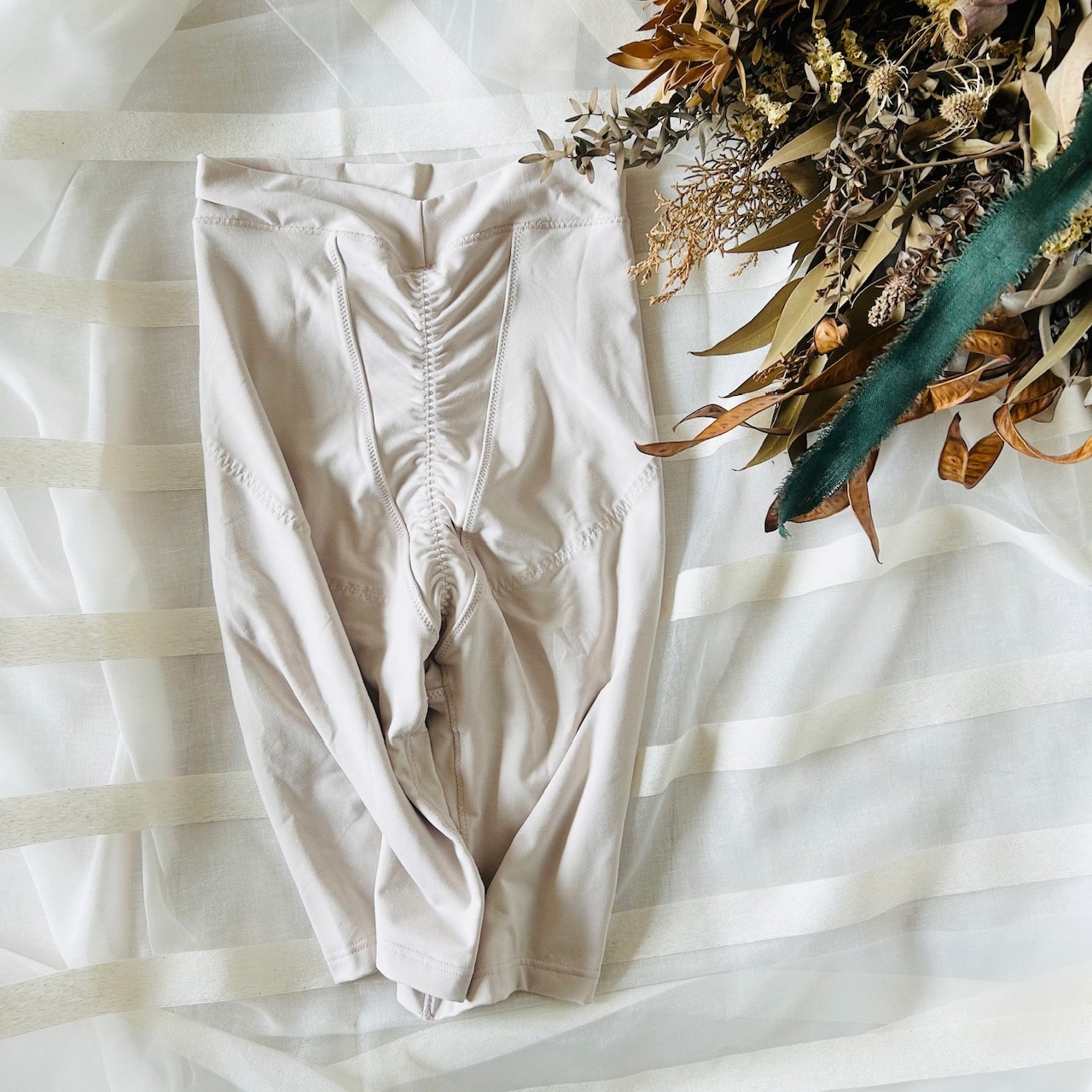個人的な体感ですが、スタイルアップのガードルよりは締めつけ感は優しく、でも、股下や骨盤まわりを持ち上げてくれる感覚がしっかりあります。