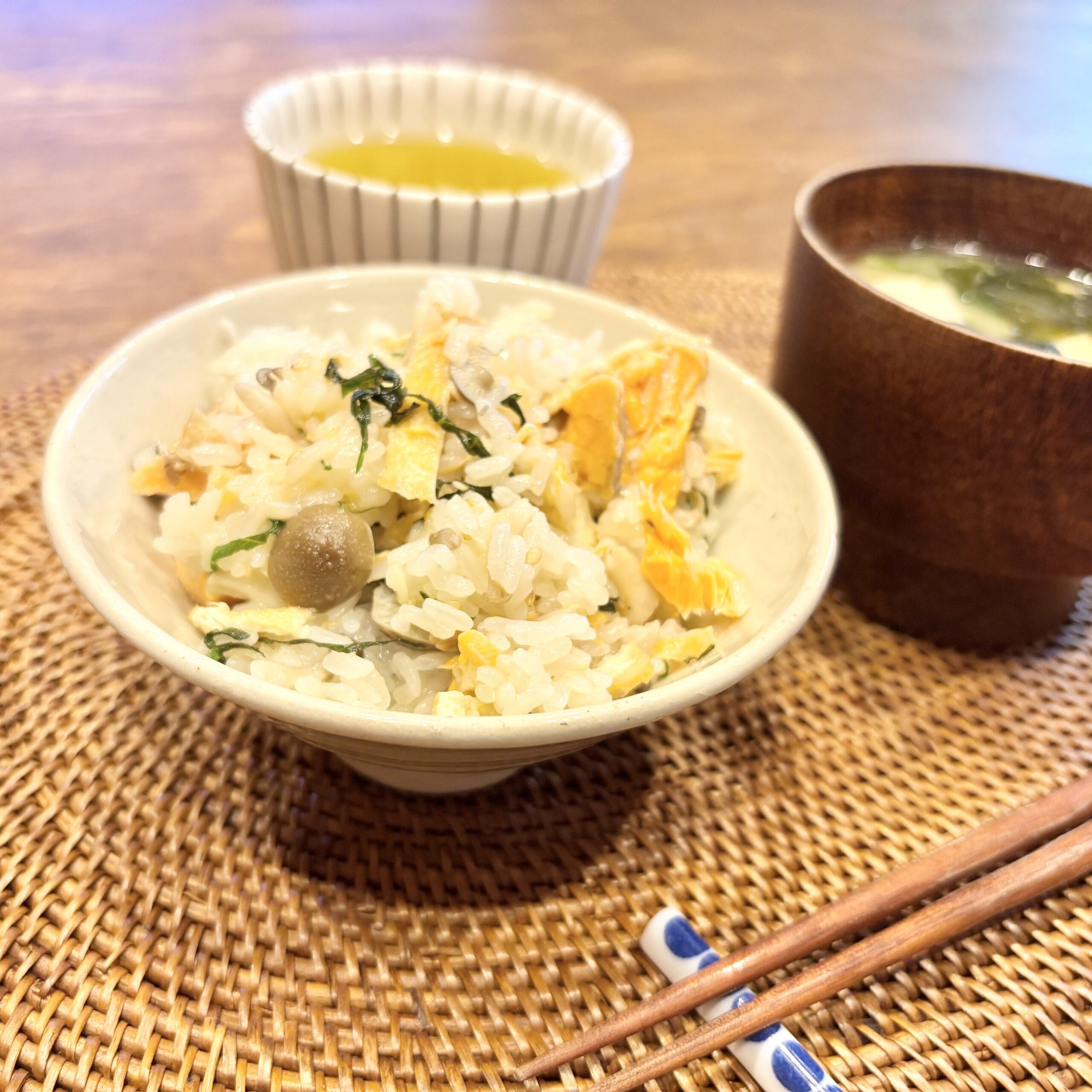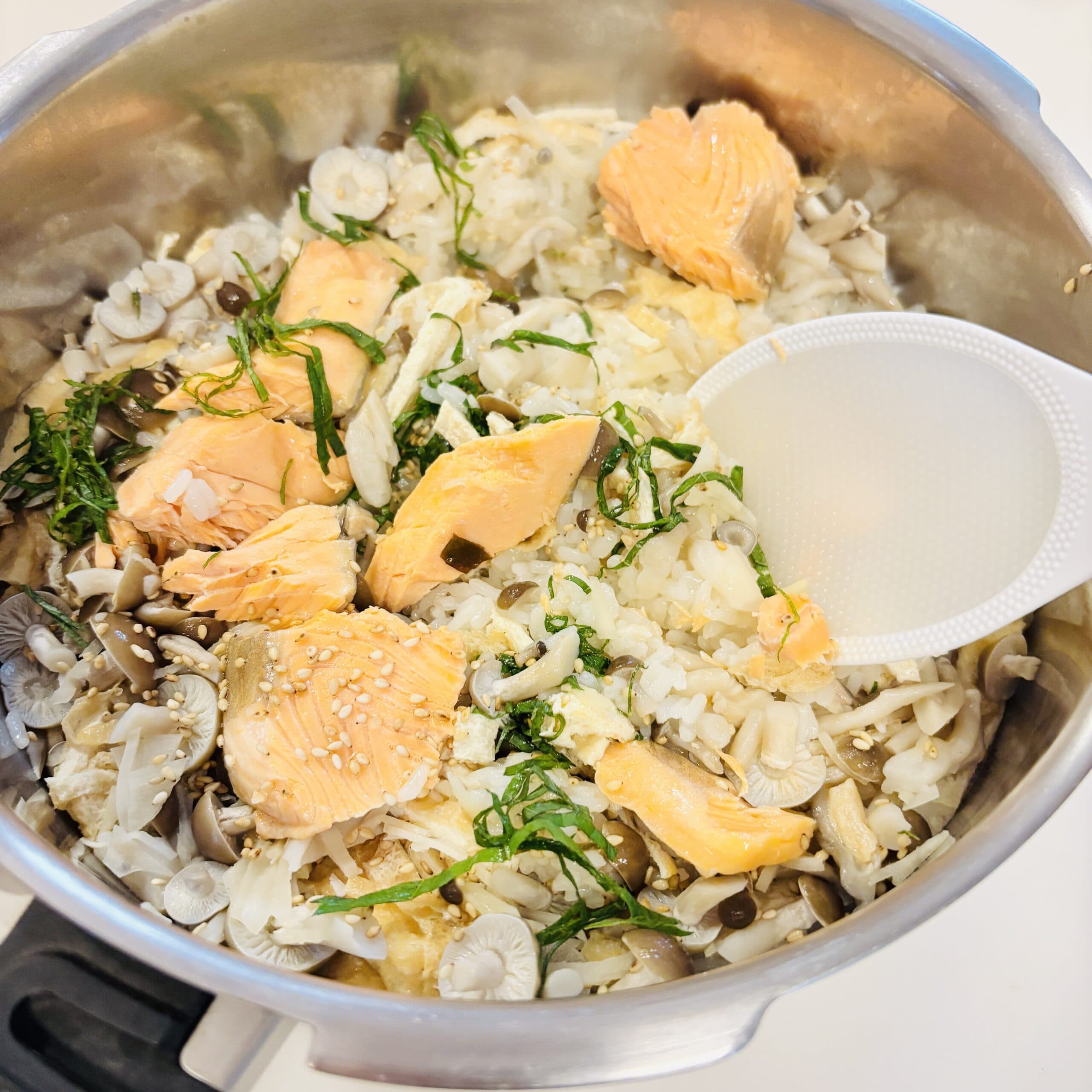 サケ、しめじ、油揚げの塩かやくごはん