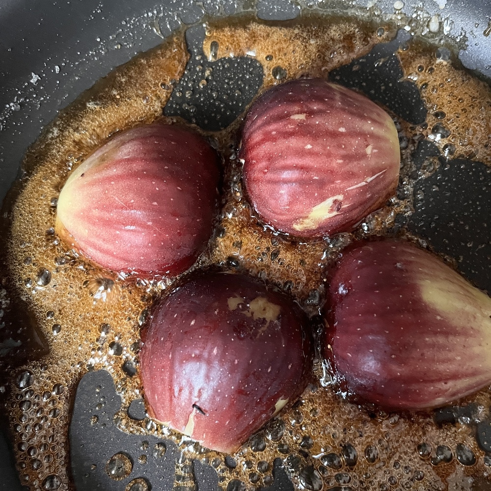 好みの色になったらいちじくを入れ、全体に絡めたら完成です。