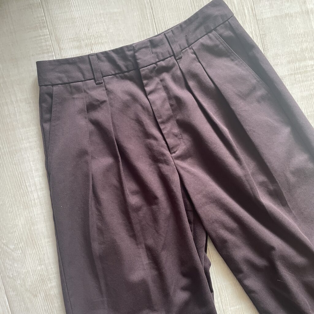 赤みの入ったブラウンパンツで、手持ちの服になんとも合わせやすい!生地はしっかり目なので、冬も履けそう。158cmでサイズはSにしましたが、基本ペタンコ靴しか履かない私には丈がちょっと長かったので2cmほど丈詰めしてもらいました。