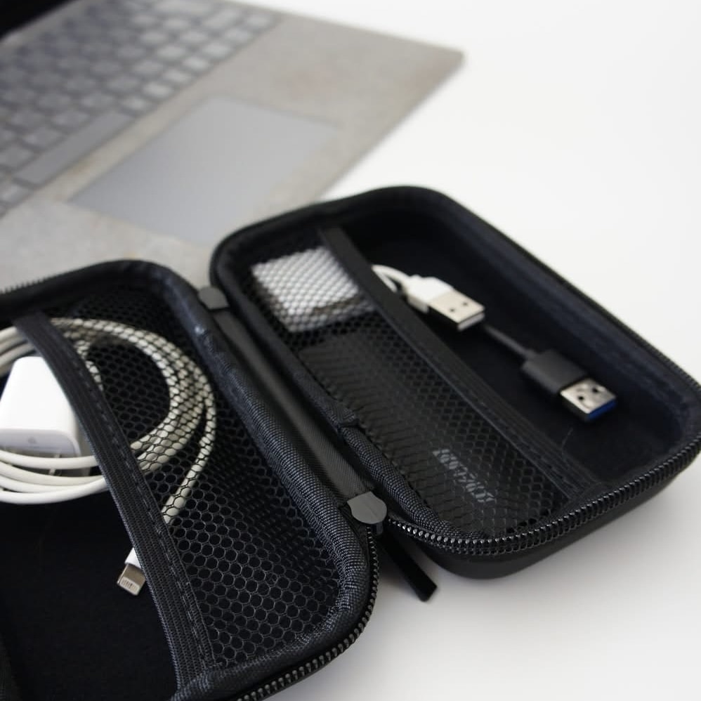 パソコンバッグの中でごちゃごちゃになっていたケーブル類をまとめて入れました。これほんと楽!